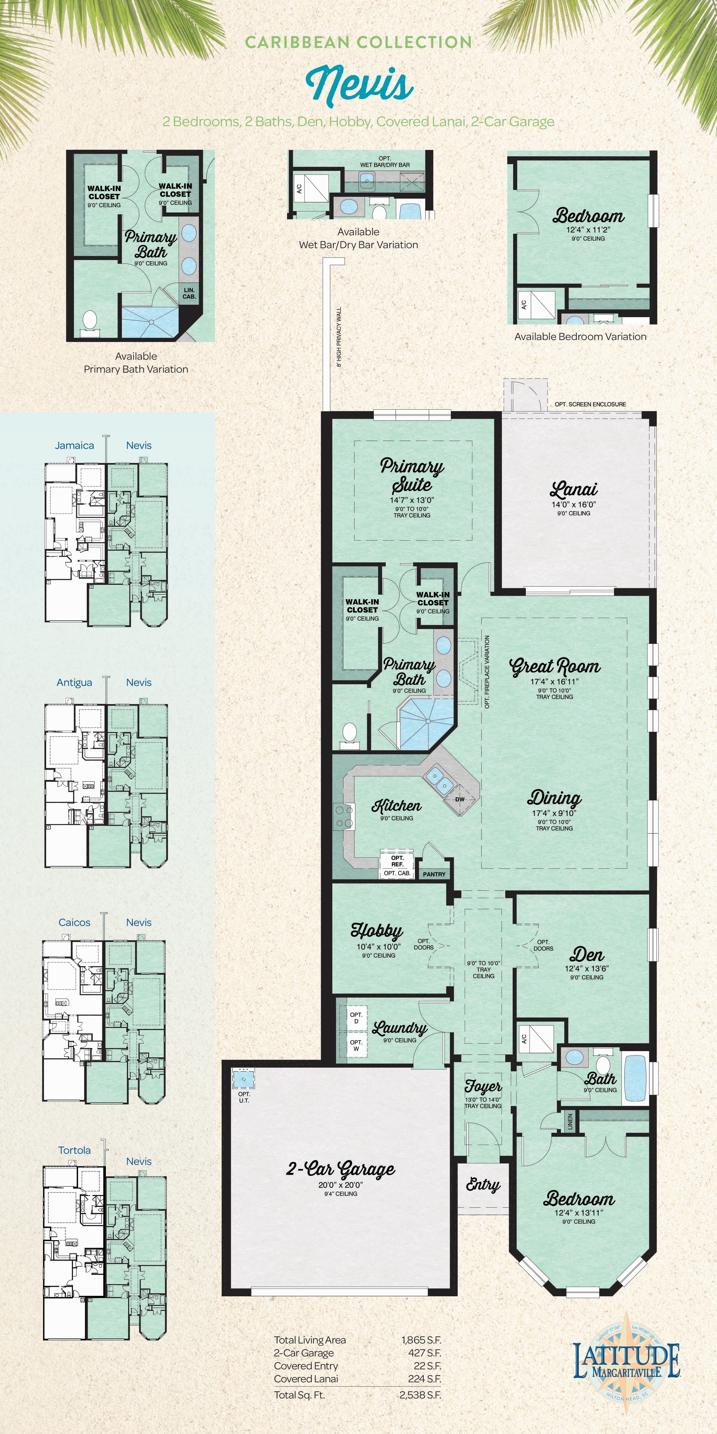 Latitude Margaritaville Hilton Head by Minto Communities is a dynamic new community that brings a fun, “no worries” vibe to lowcountry living. Latitude Margaritaville Hilton Head by Minto Communities is located in Hardeeville, SC — the scenic gateway to Hilton Head Island. This dynamic new community for those 55-and- better who are “growing older...but not up” combines South Carolina’s charm and hospitality with Latitude Margaritaville’s “no worries” tropical vibe to deliver a whole new element to lowcountry living. Latitude Margaritaville is a totally new lifestyle concept by master developer Minto Communities and global lifestyle brand Margaritaville Holdings that is redefining active adult living. Latitude Margaritaville presents the lifestyle of fun, food and music portrayed in the songs of legendary singer, songwriter and best-selling author Jimmy Buffett. Current plans call for 3,000+ homes once the community is complete, with a wide range of home designs and floor plans starting from the $300s. The sales center is open daily, with nine fully-furnished model homes to tour. Latitude Margaritaville features walkable neighborhoods, golf-cart friendly streets and regularly scheduled events and activities with their very own "Ambassador of Fun". Amenities • Latitude Town Square with Bandshell, Fins Up! Fitness Center, Paradise Pool with Beach Entry, Cabanas and Tiki Huts • Latitude Bar & Chill Restaurant and Changes in Attitude Poolside Bar • Last Mango Theater for Performances, Banquets and Dancing • Workin' N' Playin' Center with Coconut Telegraph Business Center, Barkaritaville Pet Spa, Hangar workshop and multipurpose rooms • Barkaritaville Dog Park, Tennis & Pickleball Courts, Multi-use Sports Court, Walking Trails and Much More • Lake Latitude Club with tropical party room, fire pit, and lakeside sandy beach Introducing Change in Latitude Getaway for $199/night. Now you can test the waters with a sun-splashed Change in Latitude Getaway. More info about Latitude Margaritaville Hilton Head, South Carolina