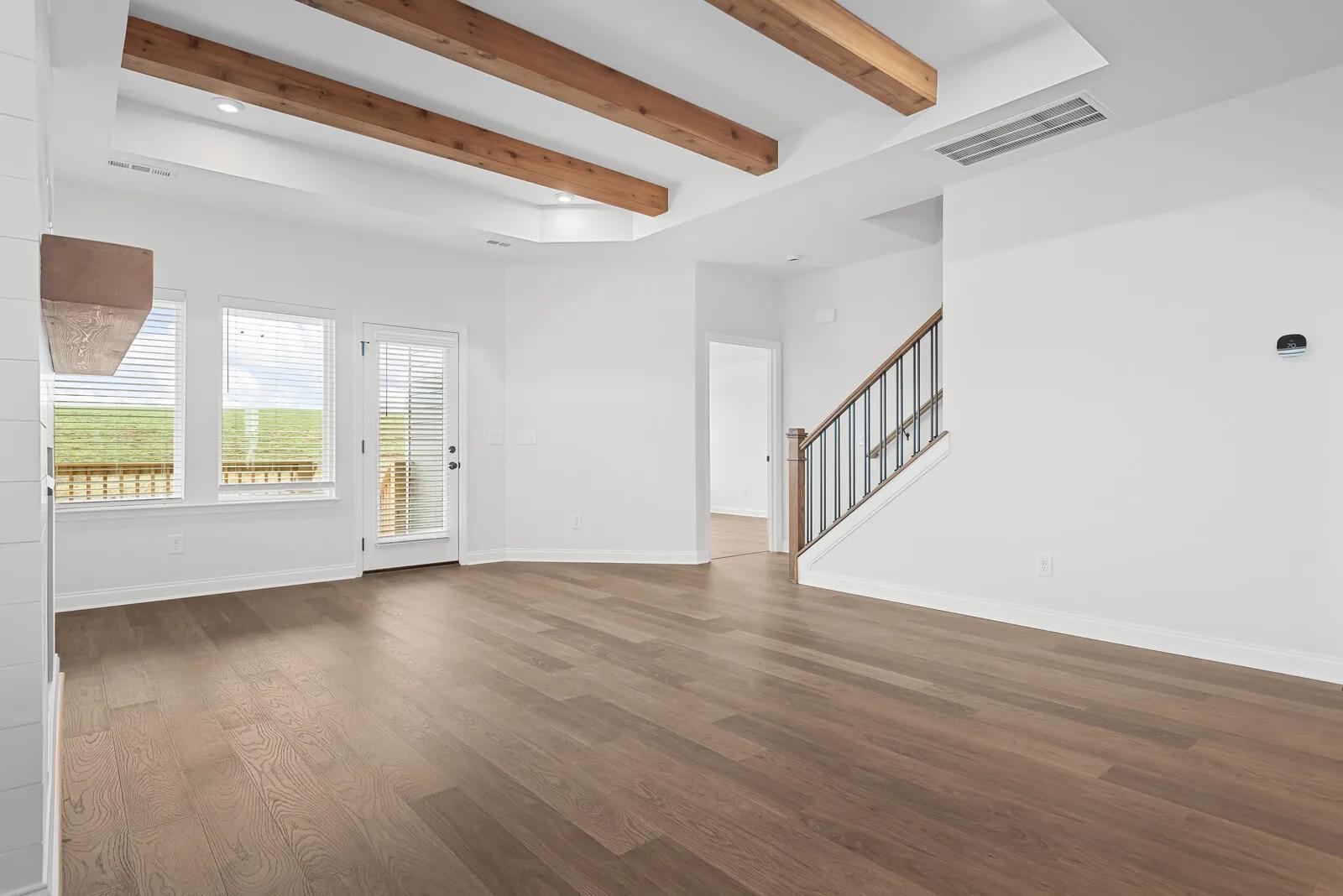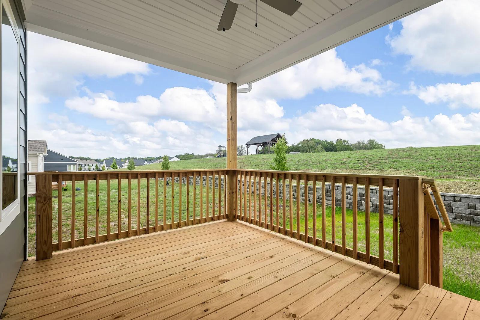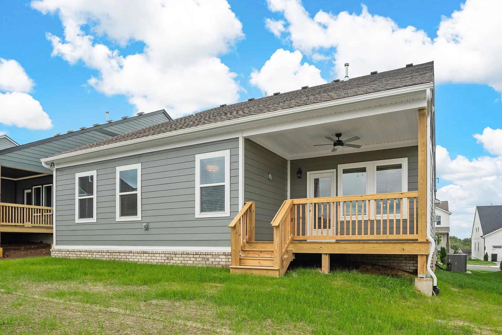 Explore the Oakland, a beautiful one-level ranch plan in Nashville. This three-bed, two-bath design boasts a balance of luxury and functionality, from optional french doors on the cozy study to the bench and storage space of the family foyer. Residents love the open floor plan and upgraded ceiling features of the family room. The covered rear porch provides great opportunities for relaxing evenings with family and friends.