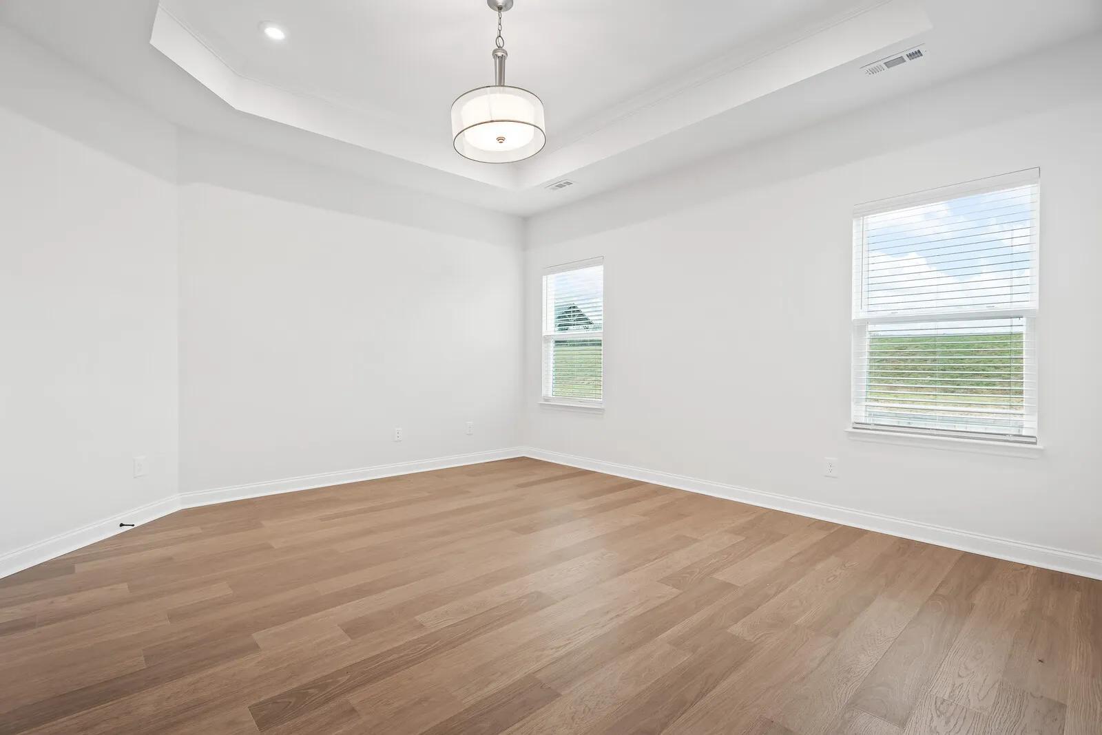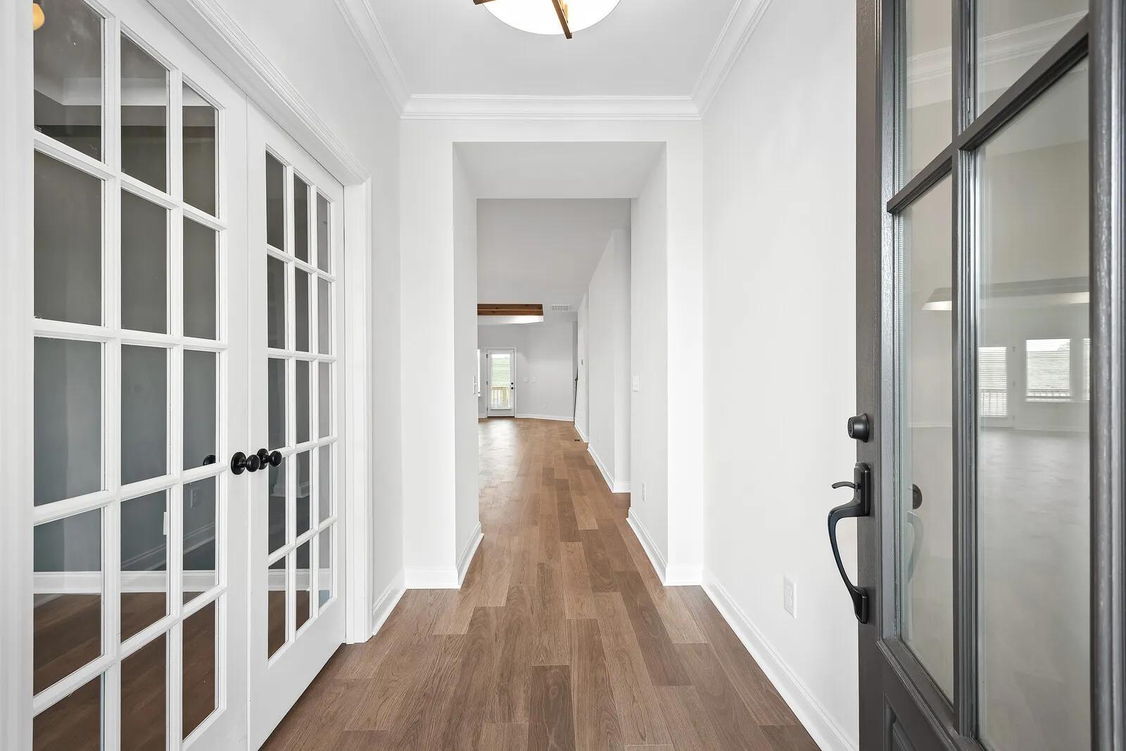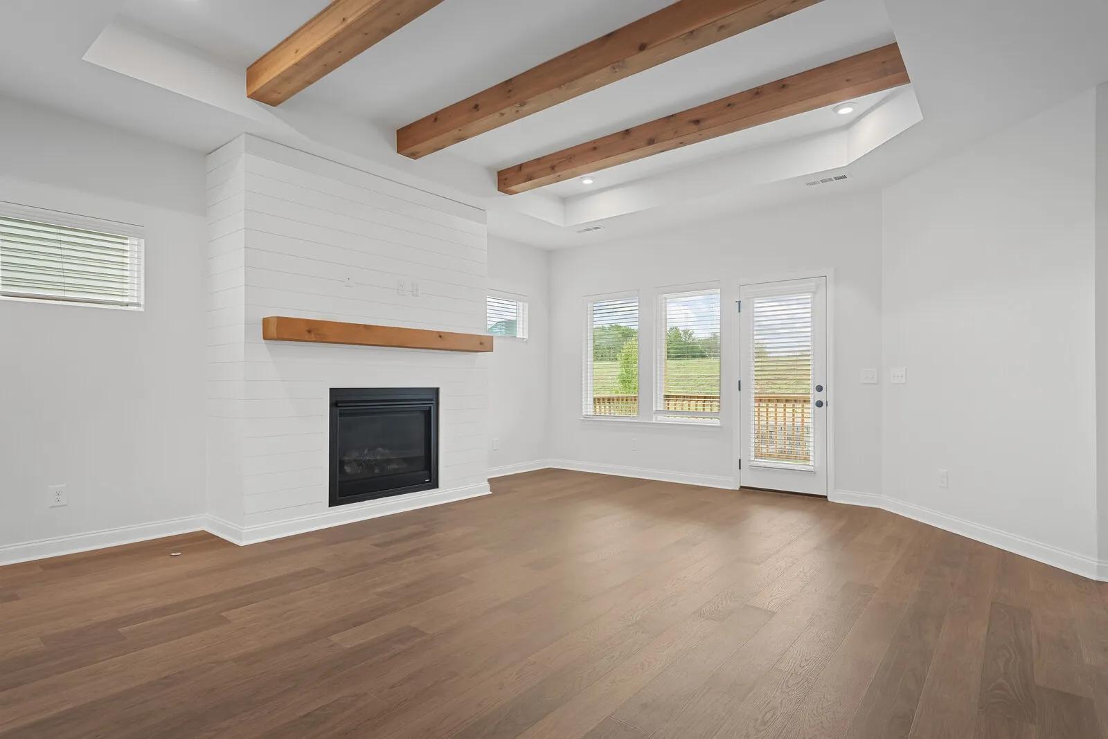 Explore the Oakland, a beautiful one-level ranch plan in Nashville. This three-bed, two-bath design boasts a balance of luxury and functionality, from optional french doors on the cozy study to the bench and storage space of the family foyer. Residents love the open floor plan and upgraded ceiling features of the family room. The covered rear porch provides great opportunities for relaxing evenings with family and friends.