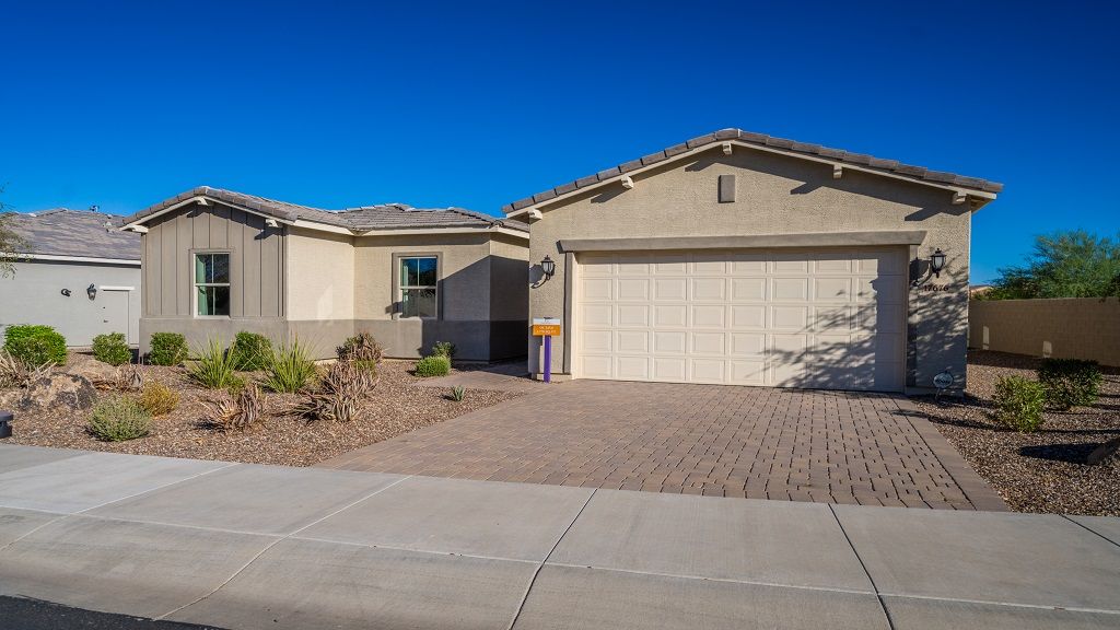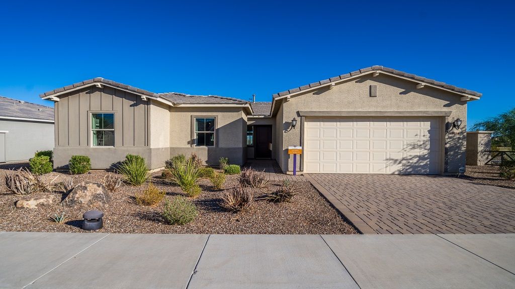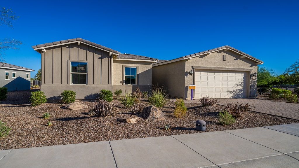 Discover new homes for sale in Goodyear, AZ, at CantaMia at Estrella, a beautiful resort-lifestyle community! Come home to a 55+ haven with incredible amenities. Here, you’ll always have something to do. Meet up with neighbors at the Clubhouse, take a serene stroll along the lake, dive into the shimmering pool to beat the summer heat, stay active at the fitness center or try out the ultra-popular pickleball on dedicated courts. Inside your new home, large entertaining areas flow into kitchens and outdoor living spaces, ideal for everything, from relaxing at home to hosting. More info about CantaMia at Estrella 55+