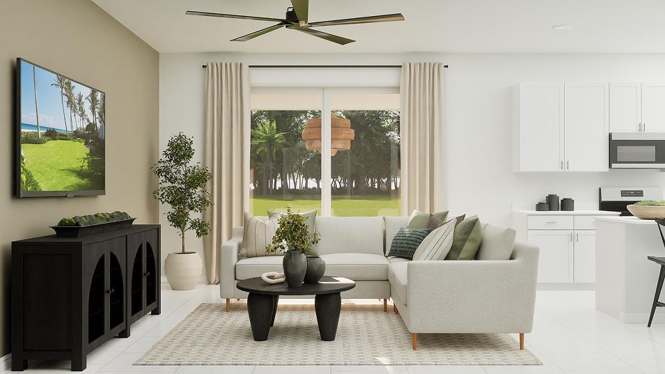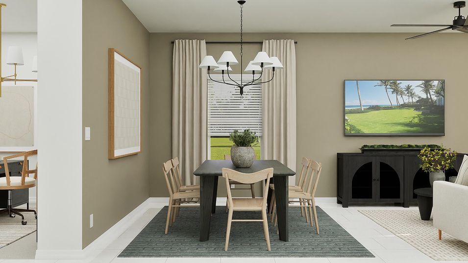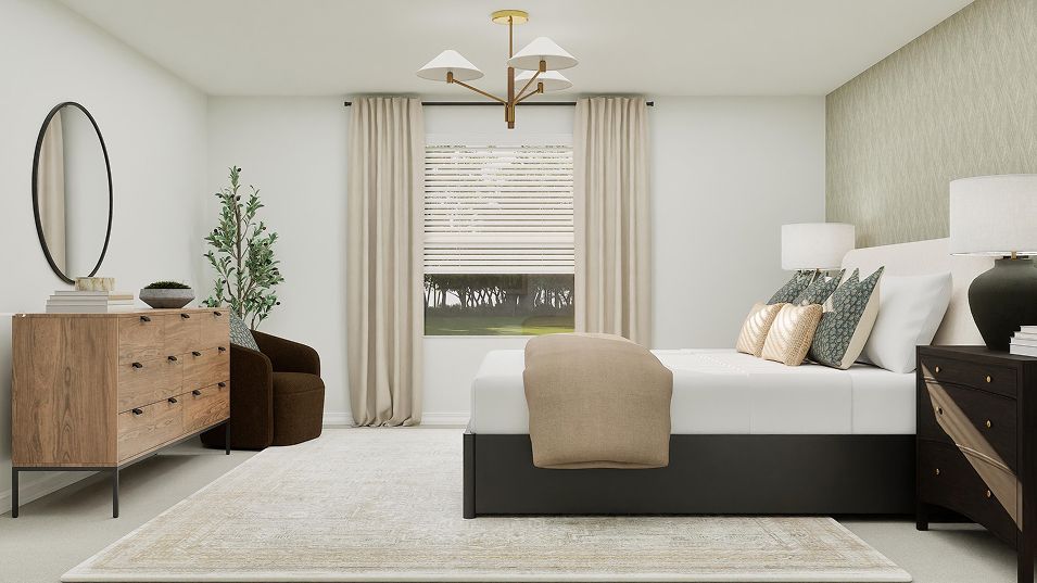 Upon entry into this new two-story home is a flex space ideal for entertaining guests, followed by the spacious open-concept living area with a covered patio to promote indoor-outdoor activities. A first-floor bedroom is well-suited for versatile uses and the remaining three bedrooms occupy the second floor, including the tranquil owner’s suite with a private bathroom. A two-car garage completes the home.