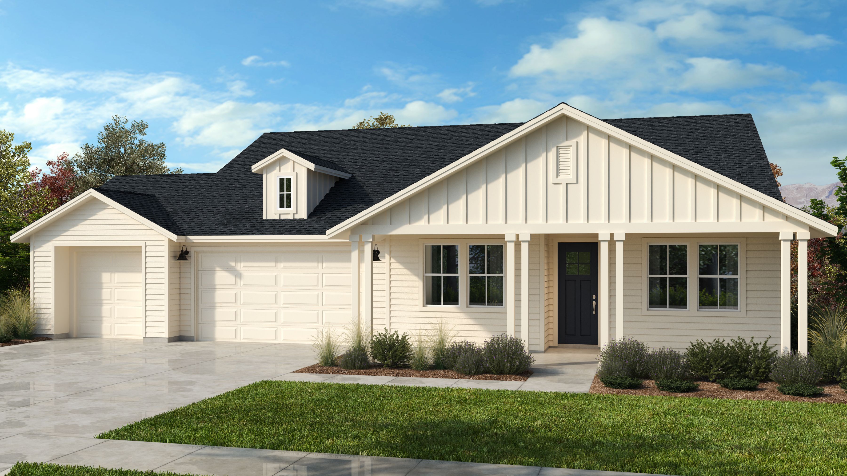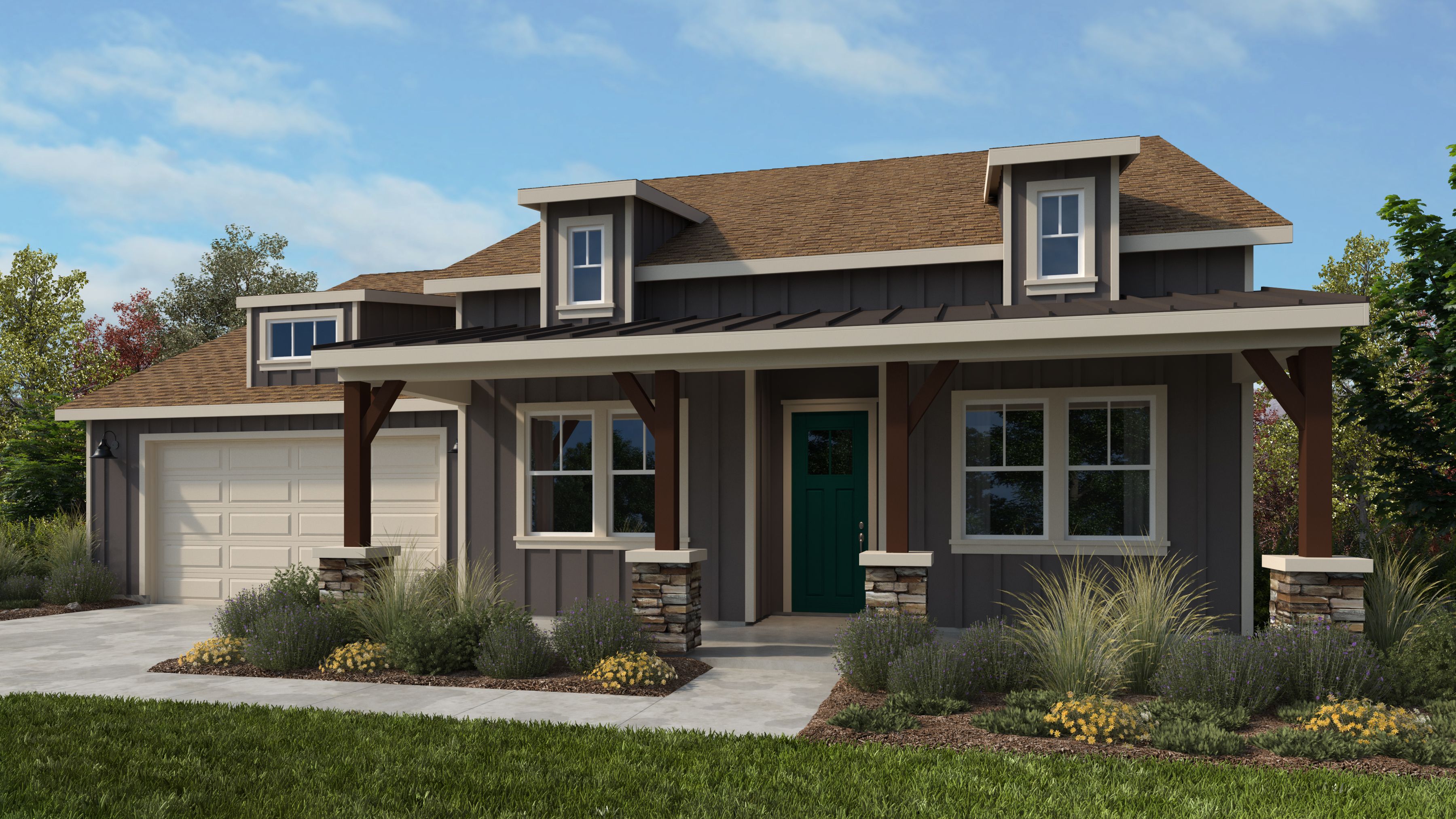 Crafted for generations of enjoyment, this residence offers a welcoming feeling the moment you step onto the front porch. The dramatic entryway opens into a spacious great room, designer-curated kitchen, and cozy dining room, all lit with stunning large windows and tons of natural light. The covered patio creates seamless transitions to the beautiful outdoors and allows for more livable space all year long. Residents will appreciate the ample and discrete storage, from airy walk-in closets in the primary and secondary bedrooms to extensive space and optional cabinets in the mudroom and laundry rooms. Ideally designed to grow with your family through all stages of life, this home can be personalized with a roomy 3-car garage, and/or den.