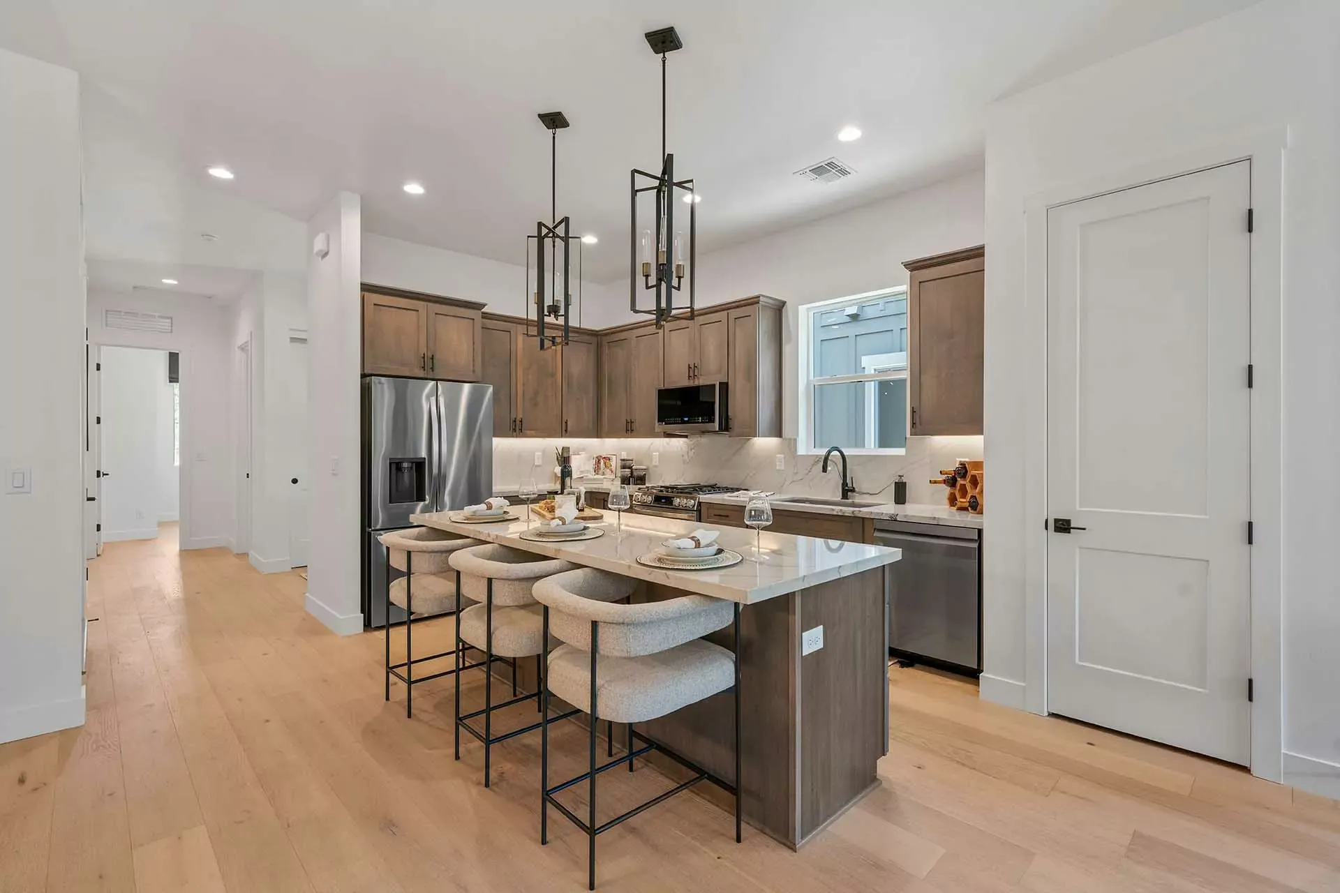 This exquisite townhome invites you in with a charming covered porch and a private side-entry front door. Upon entering, you are welcomed by a spacious foyer that sets the tone for the rest of the home. To one side, a first-floor study and a stylish half bath provide convenience and versatility, while the expansive main living area on the opposite side is perfect for both relaxation and entertainment. Spanning 2,370 square feet, this townhome boasts three thoughtfully designed bedrooms and 3.5 luxurious bathrooms, along with a spacious 2-car garage. The open kitchen, featuring a large island, effortlessly overlooks the dining area and great room, making it an entertainer’s dream. Retreat to the first-floor primary suite, complete with a large walk-in closet and double sinks, offering both ...