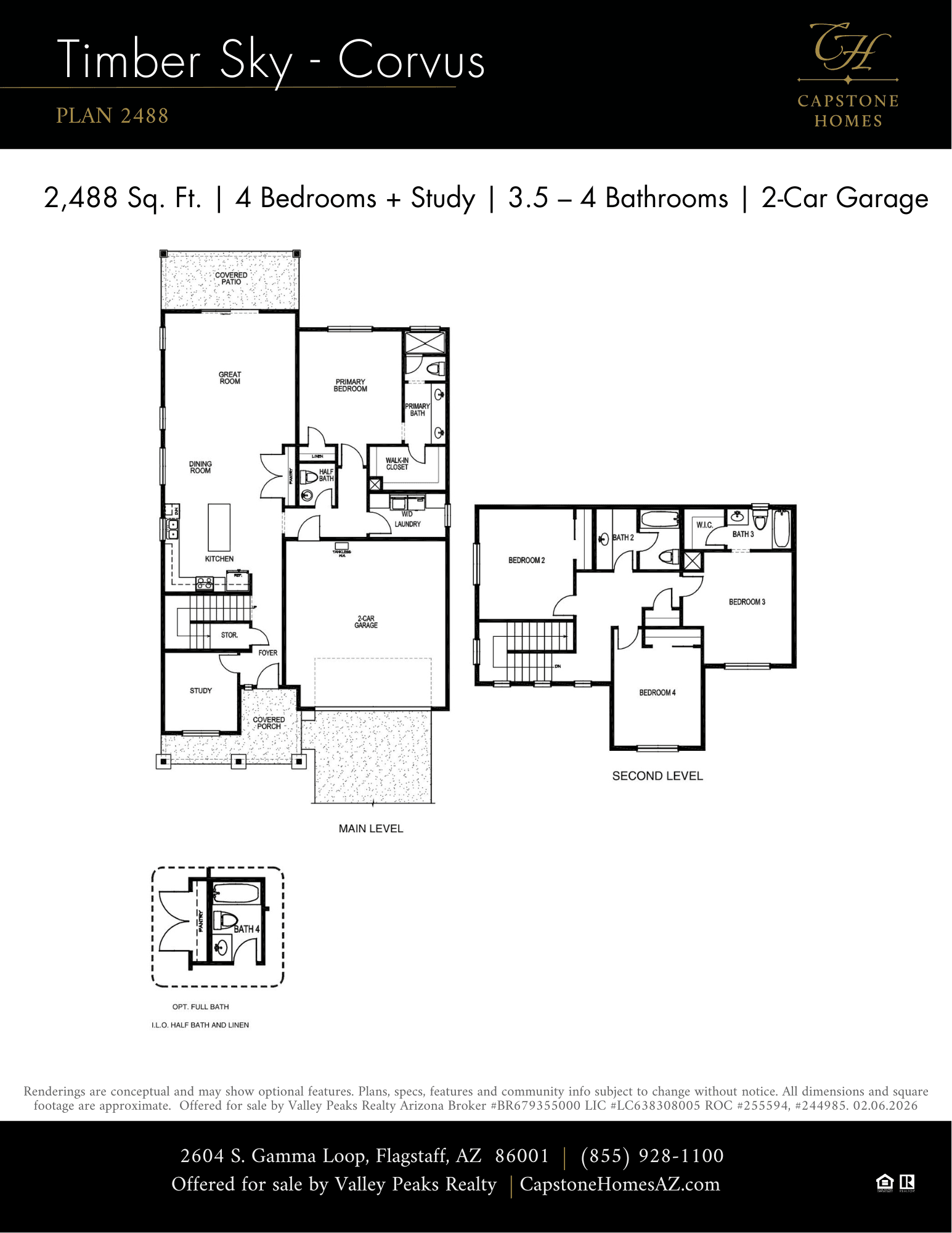 Pre-Model Pricing: Act Now Selling From Timber Sky – Sirius Set against the scenic backdrop of the San Francisco Peaks and nestled along historic Route 66, Timber Sky is Flagstaff’s premier master-planned community where nature and next-generation living come together. Designed with every season and every lifestyle in mind, Timber Sky offers the rare balance of peaceful mountain living and modern convenience. Timber Sky – Corvus offers five plans, both single and two-story homes with square footage ranging in size from 1,793 – 2,488sq ft with a total of 61 home sites. This community is located across from the community amenities area for easy access to the trails, dog park, pickleball, playground and outdoor ramada. More info about Timber Sky - Corvus