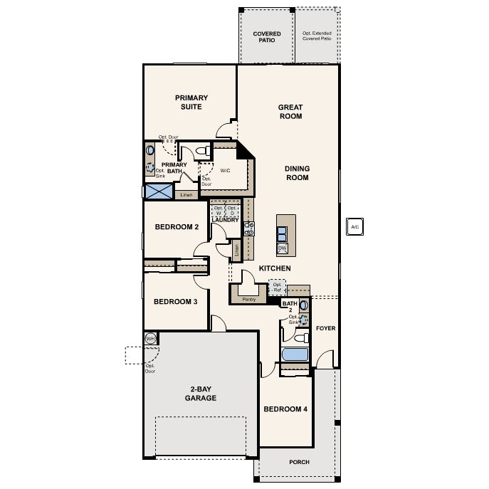 Single-story | 2 Bay Garage with Entry | Porch | Foyer | Laundry Room | Spacious Kitchen with Island and Pantry | Dining Room | Great Room with Yard Access | Primary Suite with Bath and Large Walk-In Closet | 3 Secondary Bedrooms Located in Seperate Area of the Home, with a Second Full Bath | Covered Patio Options: Primary Bath Tub and Shower, Primary Bath Super Shower, 3 Bay Garage, Extended Covered Patio Impressive Included Features: 9’ ceilings throughout, covered patio, front yard landscaping, ceramic tile flooring at entry, kitchen, all baths and laundry, granite slab counters in kitchen and baths, stainless steel kitchen appliances, Century Home Connect smart home technology.