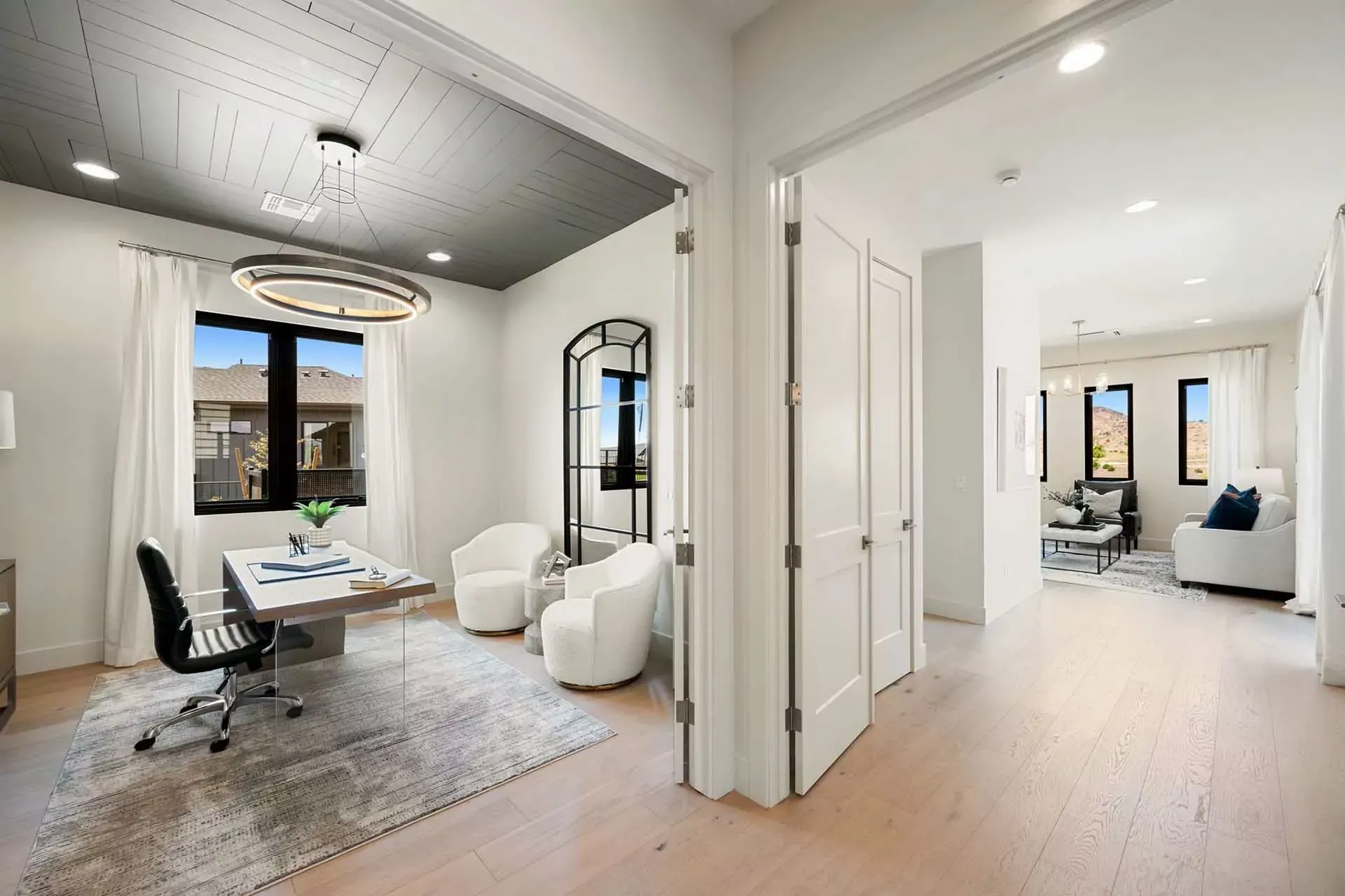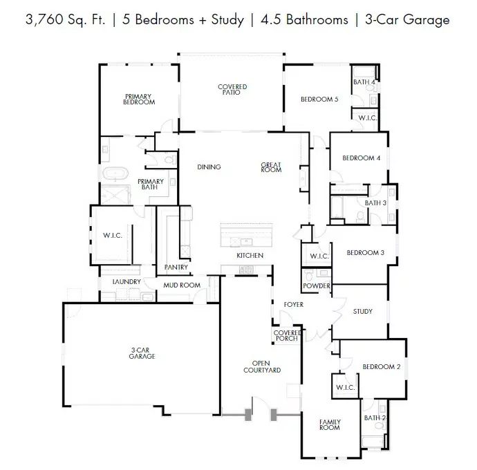 Enjoy the comfort and relaxation of your own private sanctuary with a gated open courtyard entry the home. Private study with double doors and powder are separate from the hustle and bustle of the main living area. The gourmet kitchen is sure to impress with a massive kitchen island, gas cooktop with windows overlooking the courtyard and a walk-in storage pantry to hold everything you can need to entertain. The kitchen island overlooks the great room and dining room and just pass that, a view to the backyard through the center meet doors, seamlessly blending both inside and out. The absolute entertainers paradise. Indulge in the beauty of the primary suite, with separate exit to the covered patio and expanse of windows, light floods the room. Relax and enjoy the five piece primary bathroom...