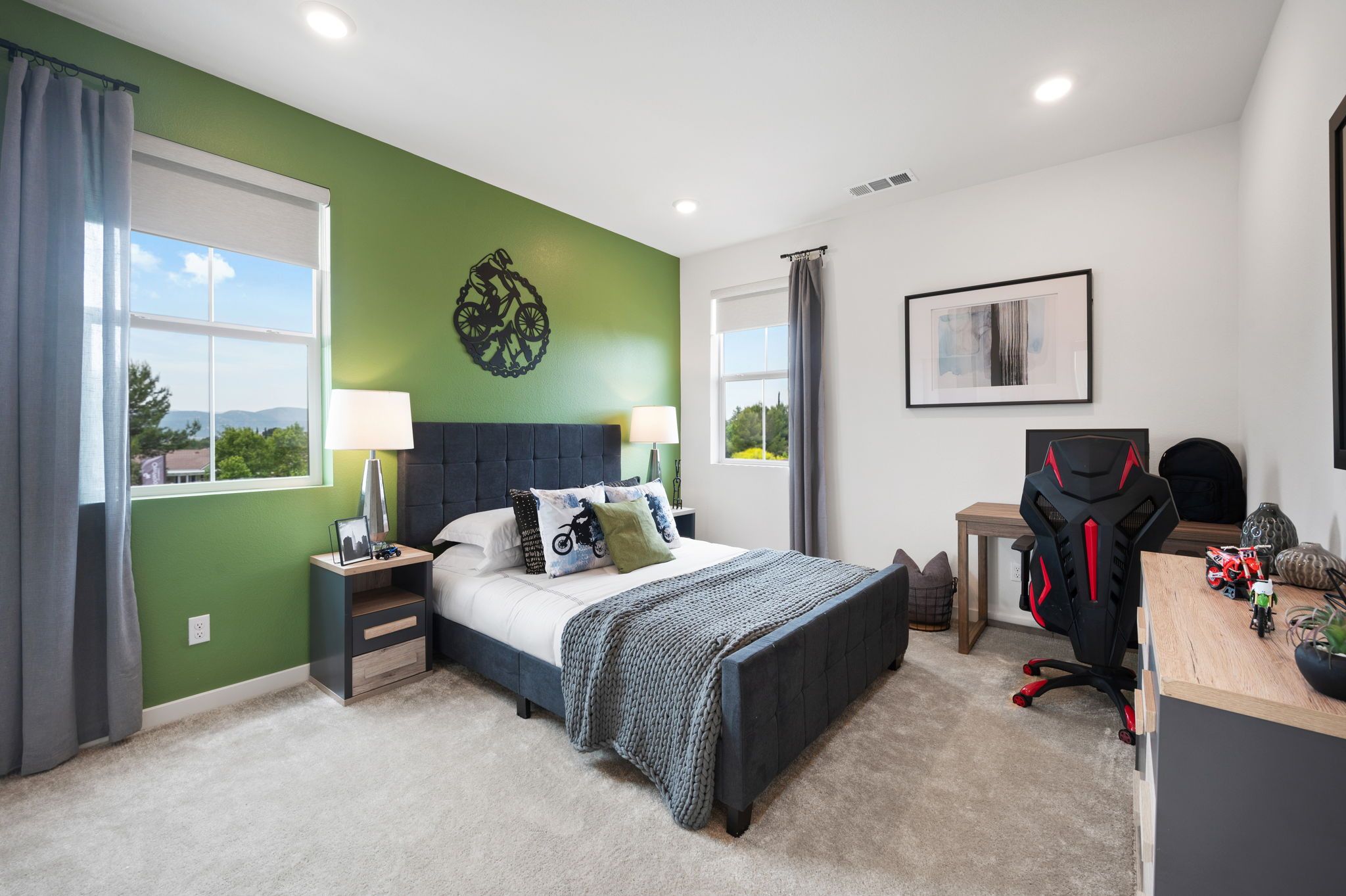 Experience the allure of this beautiful two story home, offering an inviting 2,556 sqft of open living space. With 4-6 bedrooms, 3 bathrooms, Loft, Ground floor bedroom, 3-car garage & located on a large ADU compatible lot with RV parking, this residence perfectly blends comfort and functionality. Throughout this home, you'll find the distinctive features of CrestWood Communities. Marvel at the soaring 9-foot ceilings that create a sense of spaciousness and grandeur in every room. The kitchen shines with easy-care Quartz countertops adorned with a stylish 6-inch backsplash, providing both elegance and practicality. Embrace the latest advancements in energy-saving features, including a tankless water heater and LowE windows. These additions ensure an environmentally friendly and efficient h...
