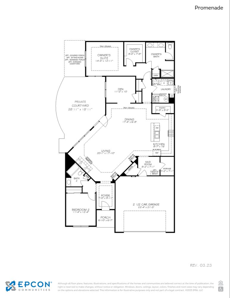 Looking for a spacious home that can comfortably accommodate your oversized furniture and host your family and friends? The Promenade is the ideal option - This expertly designed house offers ample space for all your needs, along with a range of features to help you relax and recharge. Here are some of the highlights: Optional gourmet kitchen with center island and walk-in pantry Secluded den and private courtyard for peaceful moments Spacious owner's suite and bath for ultimate relaxation Mudroom with additional storage space for easy organization For those who believe that the home is where the heart is, look no further than the Promenade. Come see it for yourself and experience the best of modern living.