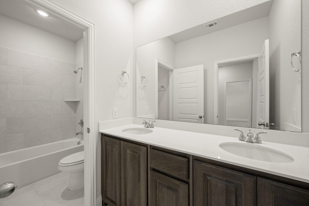 Beautiful, two-story plan perfect for a growing family that needs more space. This home has a study off the entryway with walk-in closet and two bedrooms on the main floor. The California kitchen has ample storage and counter space and opens to the dining and family rooms. Large walk-in pantry and spacious utility room. The owner’s suite is private at the back of the home with a Texas-sized walk-in closet, garden tub and separate shower. The second floor has two bedrooms with walk-in closets, full bathroom, game room, storage closet and kids den. Large covered patio great for family BBQs.