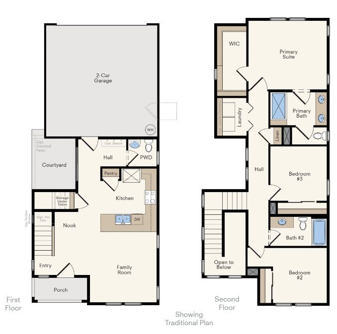 Introducing The Biltmore at Ventris Place, a spacious and stylish 3-bedroom, 2.5-bathroom home offering 1,482 square feet of thoughtfully designed living space. This two-story residence is perfect for those seeking extra room to grow. On the first floor, the open-concept family room flows seamlessly into the kitchen and dining nook, creating a welcoming space for entertaining and daily activities. The kitchen features modern amenities, pantry, and easy access to a cozy courtyard—ideal for outdoor dining or relaxation. The attached 2-car garage offers convenience and additional storage. Upstairs, the primary suite provides a private sanctuary with an en-suite bath, large walk-in closet, and ample natural light. Two additional bedrooms, a full bathroom, and a laundry room complete the secon...