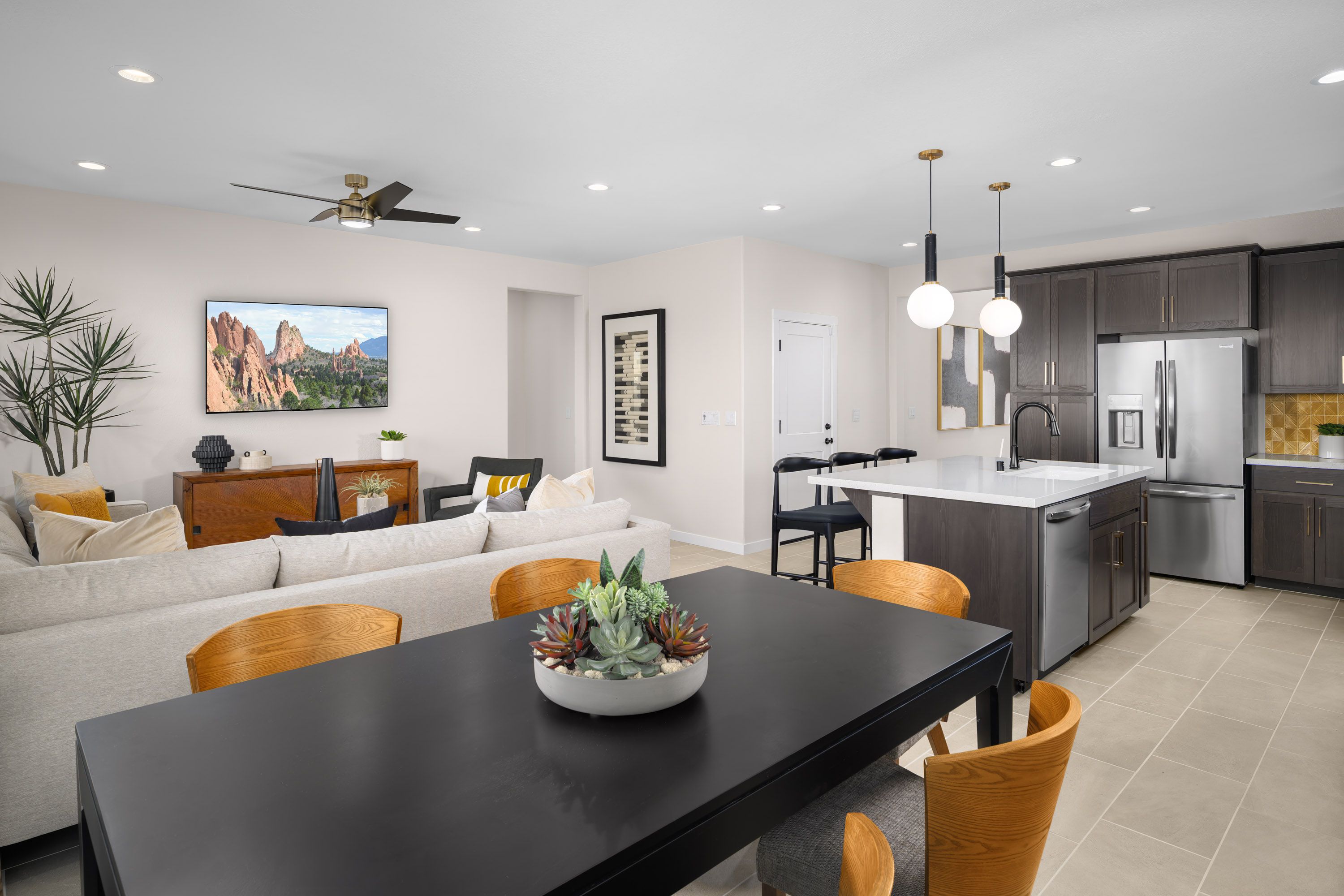 Residence Three: Designed with versatility in mind, this home features a full downstairs bedroom and bath, ideal for guests or a home office. Upstairs, an airy layout opens to below, with a private primary suite and well-separated secondary bedrooms. Enjoy the luxuries included in a Cresleigh Home such as hand set tiles in entry way, kitchen and wet areas, large eat-in kitchen island, ample storage, and All-Ready Smart Home package.