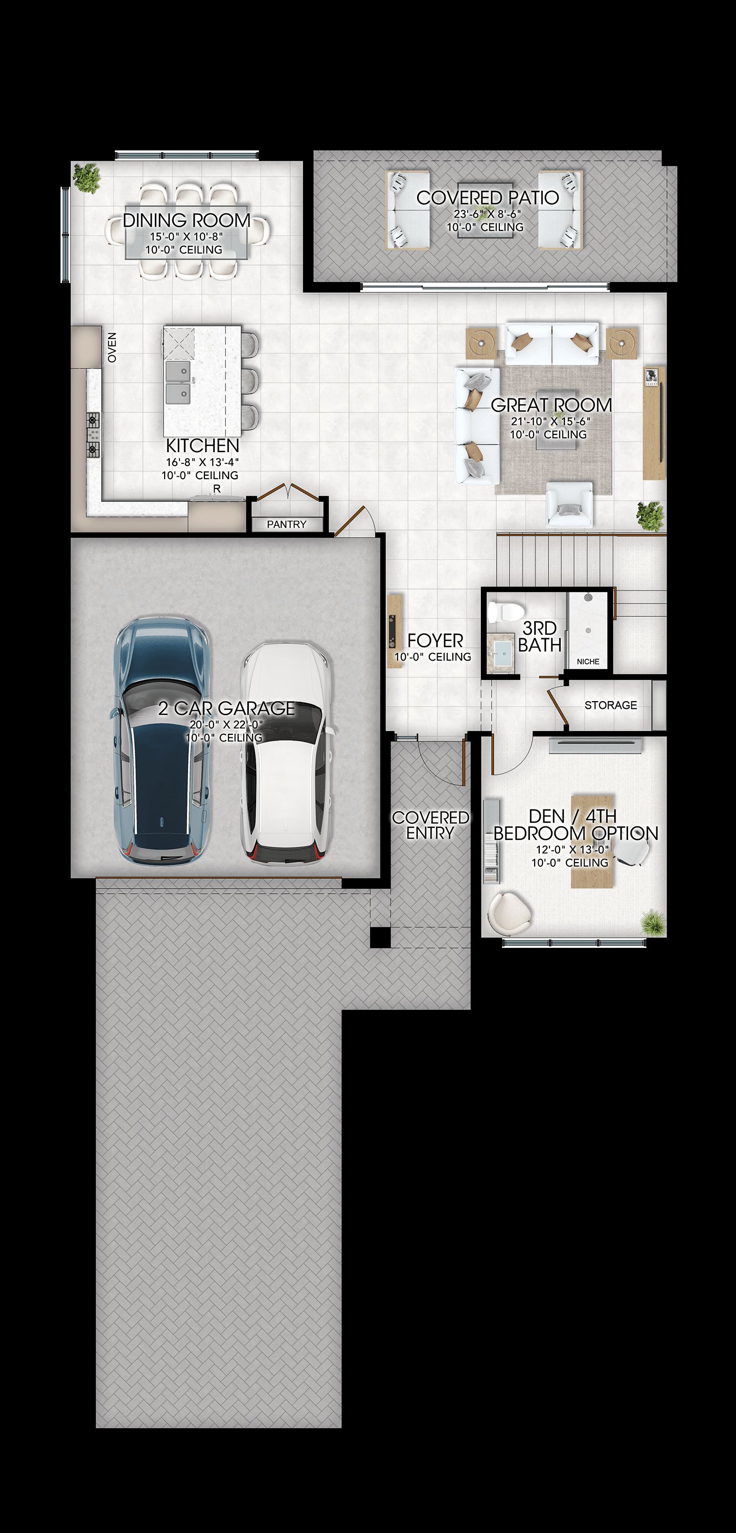 3 Bedrooms, 3 Bathrooms, Den/Opt. 4th Bed, Great Room, Loft, 2-Car Garage, 2,807 a/c sq. ft.