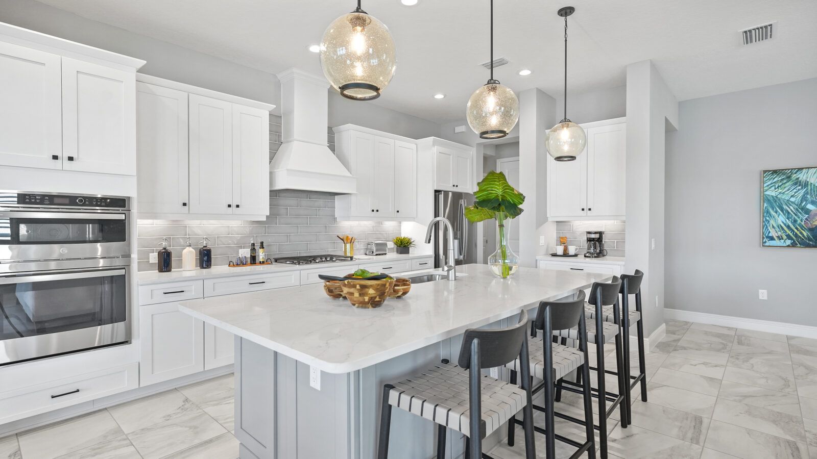 *Base price does not include the homesite premium or design options.* The main living area of the plan is spacious and open with a great room, dining room and island kitchen. In the master suite, two walk-in closets sit just off the bedroom, which includes an optional recessed ceiling. The suite’s master bath features dual sinks, a large walk-in shower and water closet. Another full bath, situated between the two remaining bedrooms, has the option of Jack and Jill entry. The plan also includes a den or office, large laundry room and a spacious covered lanai, with an option for a pool bath.