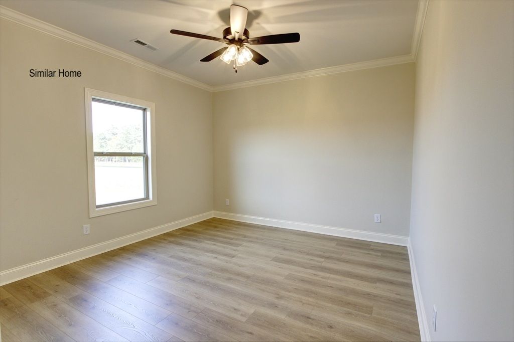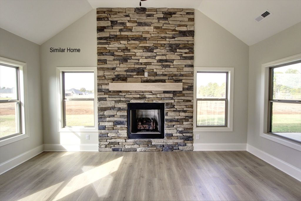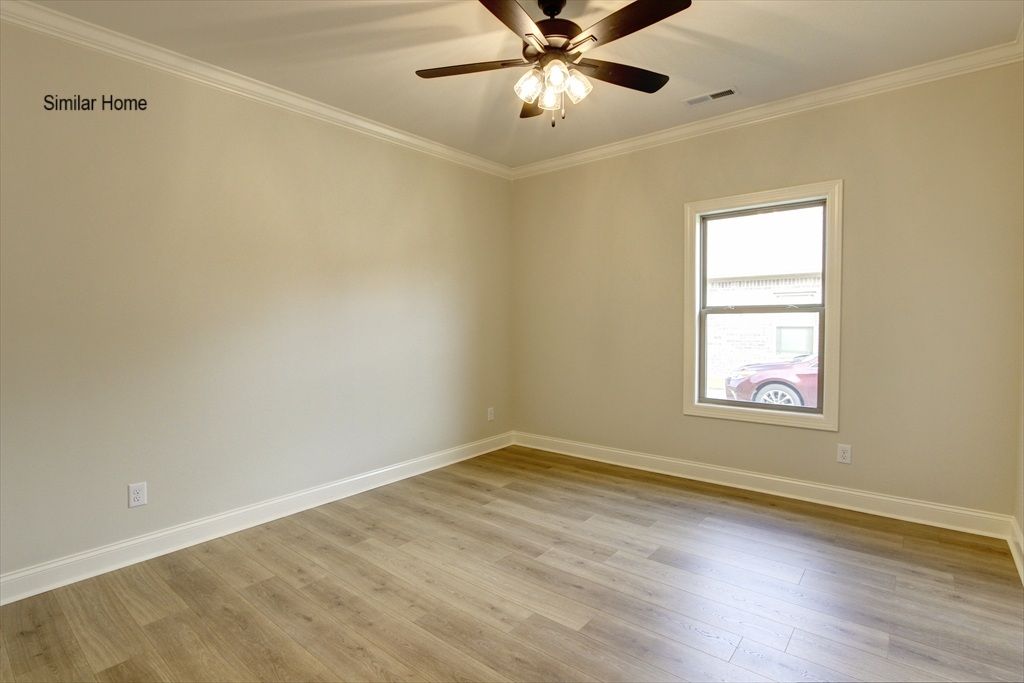 All brick Sedona Plan A is an open plan with a 3 car side entry garage backed by a 2-10 home warranty. Home has 5 bedrooms, 3 baths and a keeping room. Home has wood plus flooring (Mohawk Revwood, Engineered Wood or similar product) in all living areas and bedrooms. Great Room features 12' ceiling with 8' tall doorways, extensive trim, gas-log fireplace with upgraded fireplace treatment, recessed lights and ceiling fan. Dining room has 12’ coffered ceiling with 8' doorways and extensive trim including shadow box under chair rail. Open Kitchen has 12’ ceilings in kitchen, 9' soft close custom cabinetry and granite countertops, large island with extra storage and countertop seating, stainless appliances (Gas Cooktop, Cabinet Vent Hood, Wall Oven, Wall Microwave, Dishwasher), tile backsplash,...