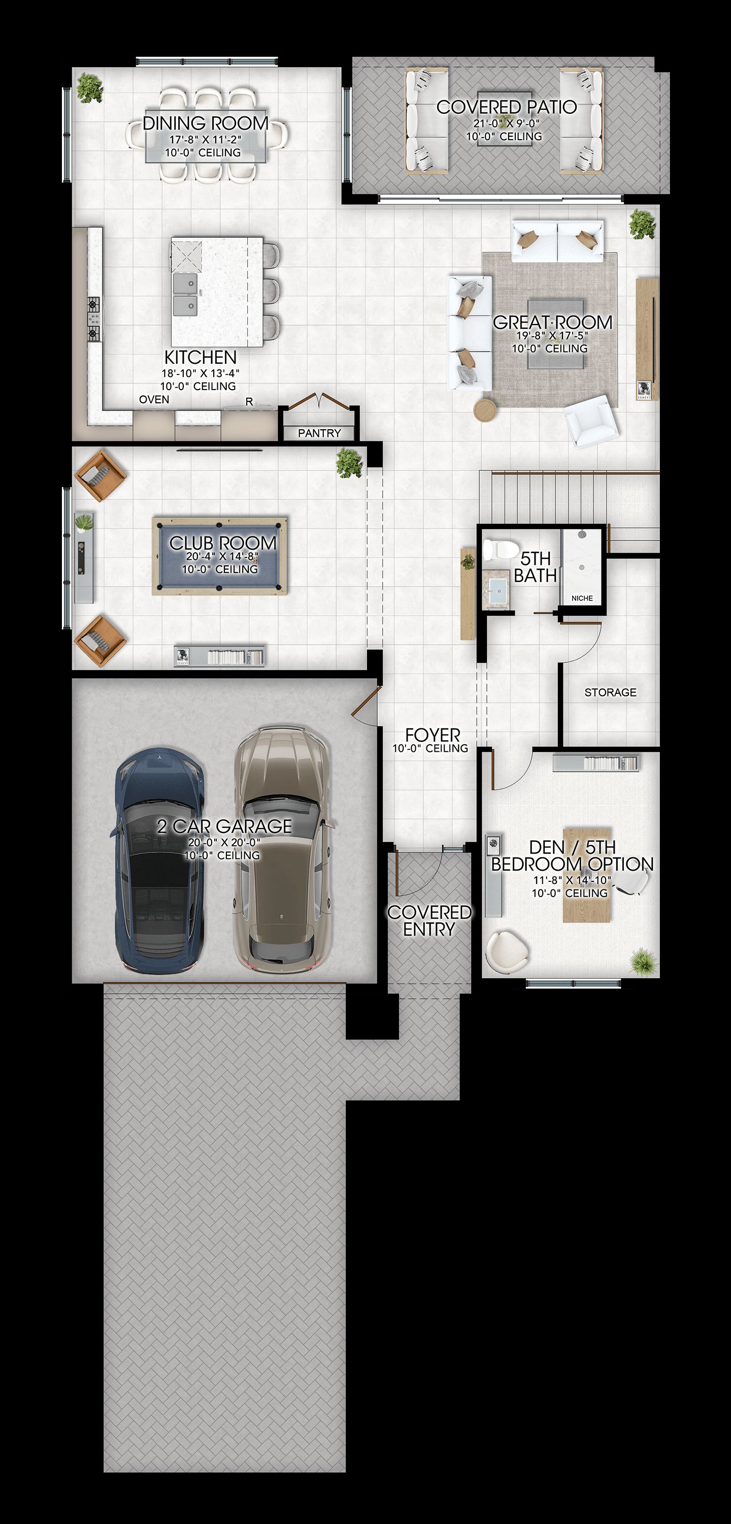 4 Bedrooms, 5 Bathrooms, Den/Opt. 5th Bed, Great Room, Club Room, Loft, 2-Car Garage, 3,870 a/c sq. ft.