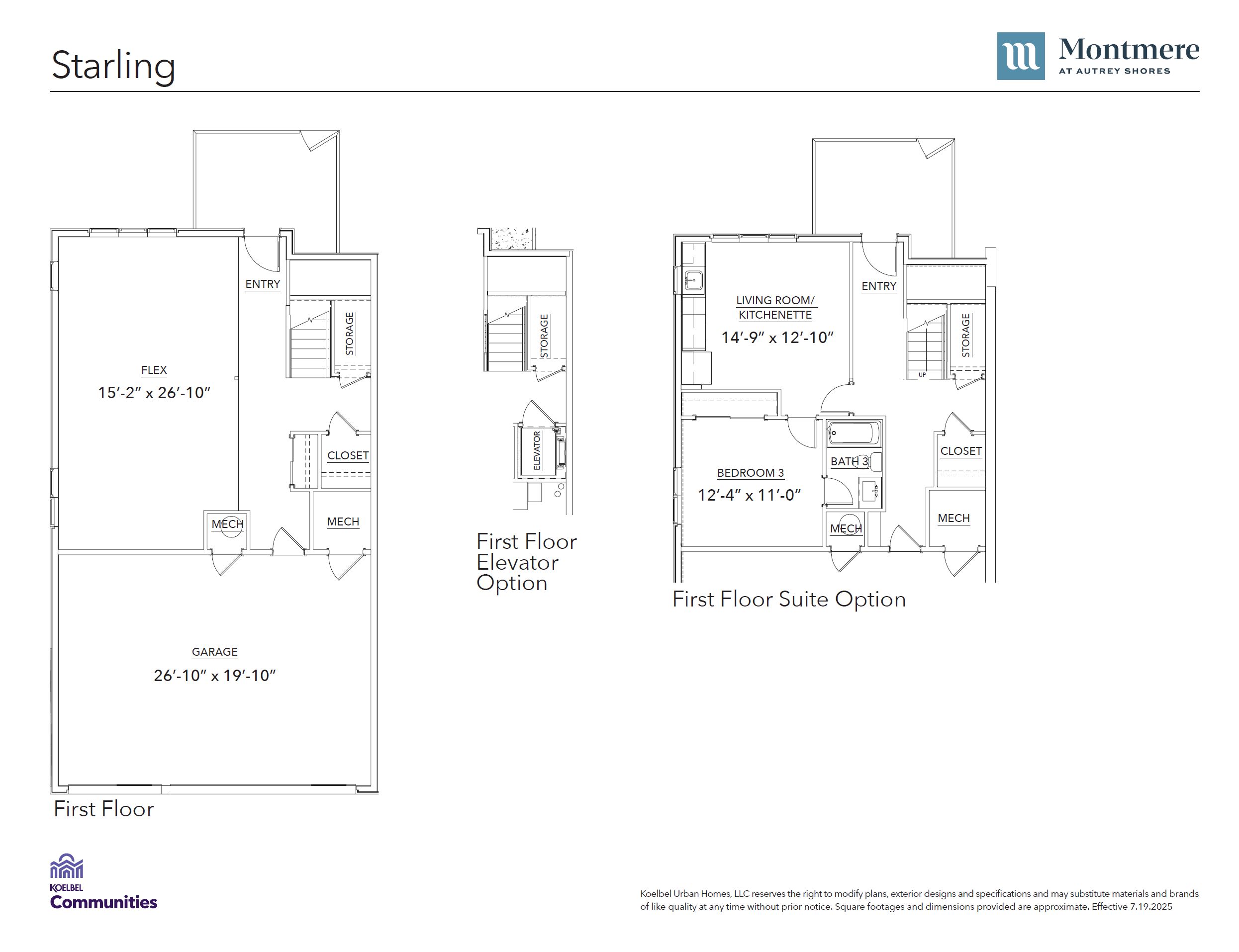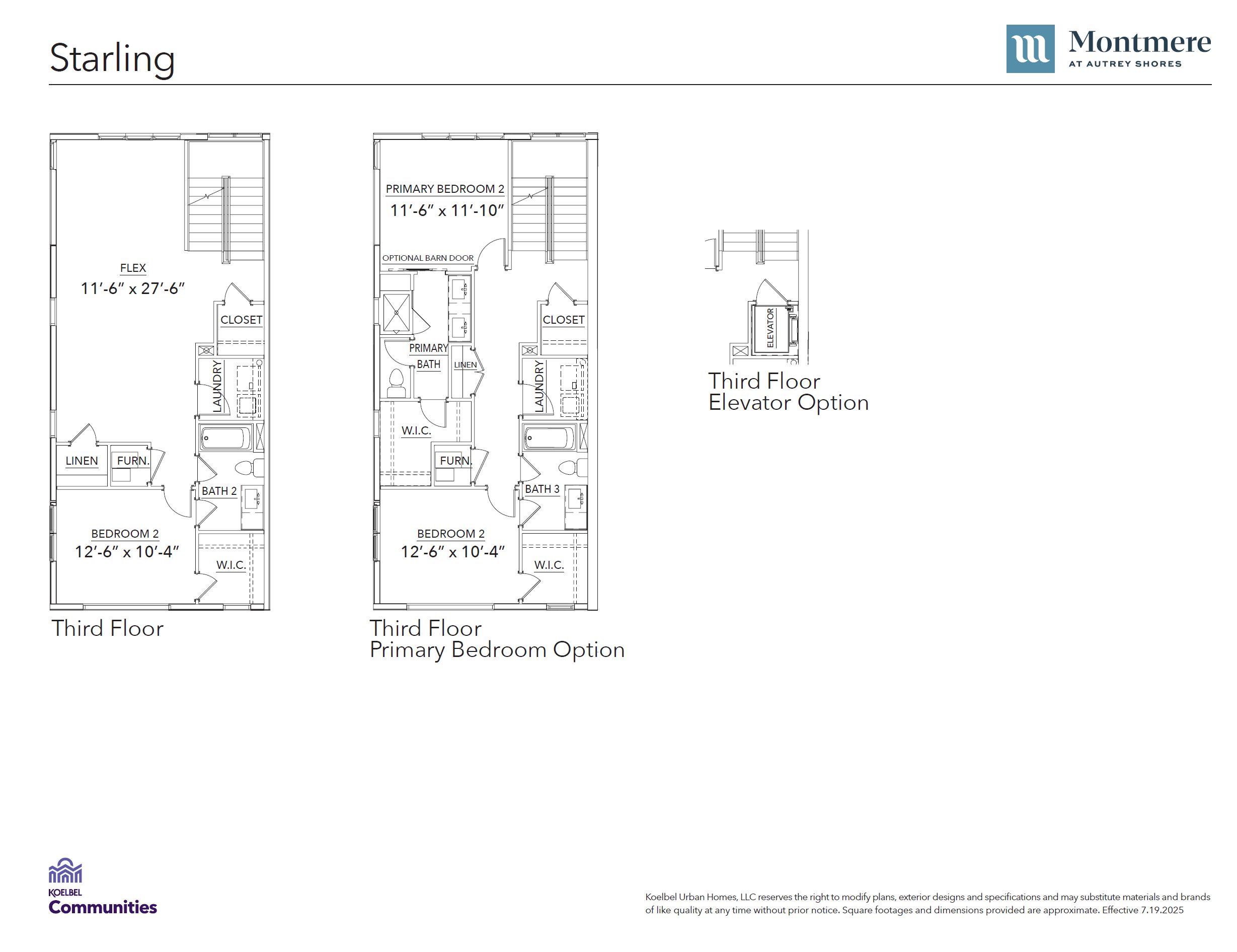 This plan offers the most space of any Montmere home. FEATURES - 2,979 square feet - Master suite on open-concept living level - End unit - 2 bed, 3.5 bath & flex space - 3-car attached (side-by-side) garage - 1st floor optional suite - 3rd floor option second master - Rooftop deck with optional kitchen - Optional elevator