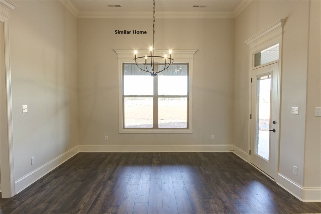All brick Taft A is an open plan with a 3 car side entry garage backed by a 2-10 home warranty. Home has 4 bedrooms, 3 baths and a sunroom. Home has wood plus flooring (Mohawk Revwood, Engineered Hardwood or similar product) in all living areas and bedrooms. Great Room features 12' ceiling, 8' tall doorways, extensive trim, gas-log fireplace with upgraded fireplace treatment, floor outlet, recessed lights and ceiling fan. Dining room has 12’ coffered ceiling, extensive trim including shadow box under chair rail. Open Kitchen has 12’ ceilings in kitchen, 8' tall doorways, 9' soft close custom cabinetry and granite countertops, large island with extra storage and countertop seating, stainless appliances (Gas Cooktop, Cabinet Vent Hood, Wall Oven, Wall Microwave, Dishwasher), tile backsplash,...
