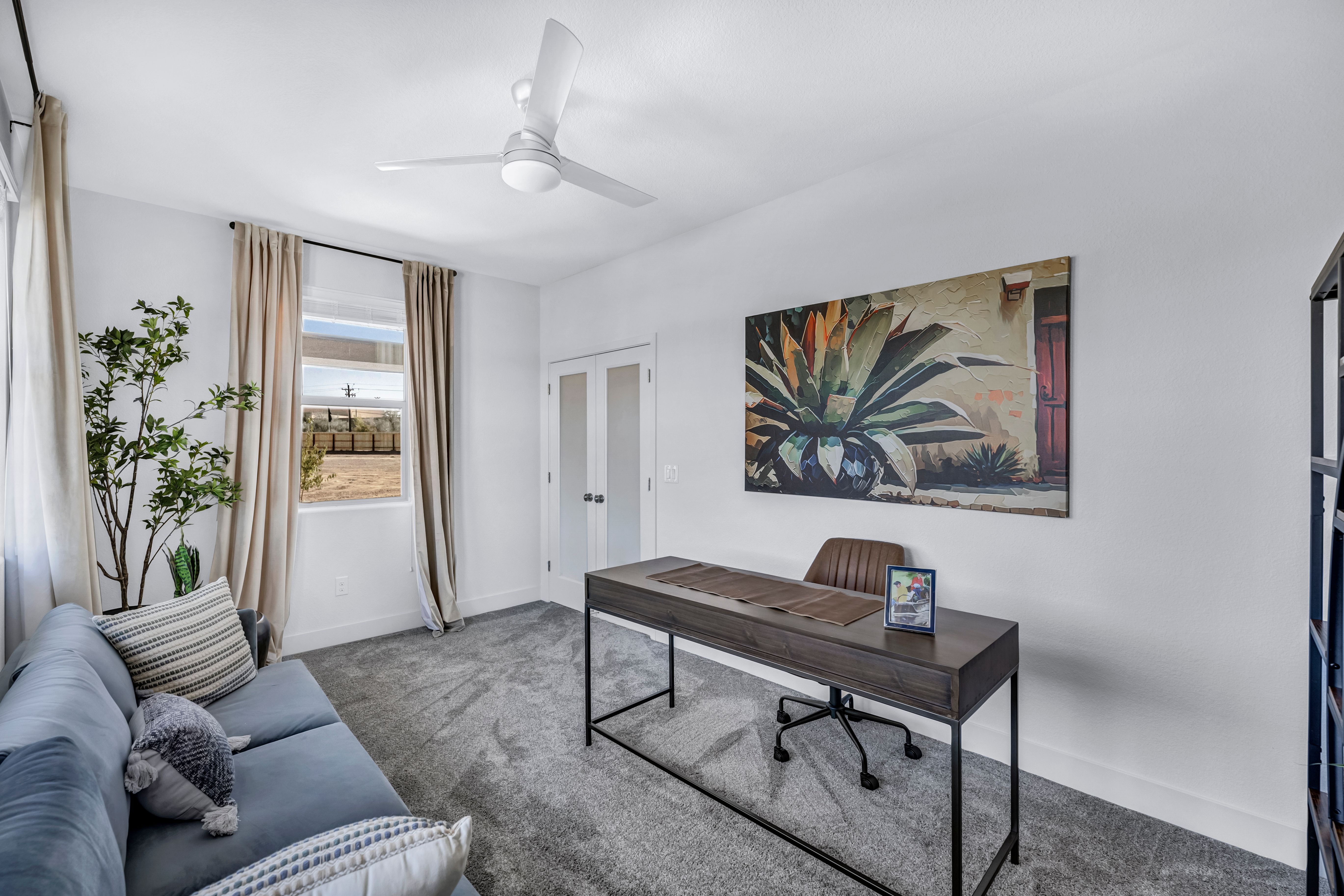 Plan 3 is designed to balance comfort and functionality effortlessly. Spanning 1,973 square feet, this thoughtfully crafted single-story home features a versatile den, perfect for a home office or hobby space. The great room flows seamlessly onto a covered patio, offering an inviting outdoor retreat for relaxation or entertaining amidst scenic surroundings. Inside, the expanded laundry room ensures plenty of storage to keep your home organized. With three bedrooms, a den, two bathrooms, and a 2-car garage, Plan 3 provides the ideal blend of indoor and outdoor living tailored to your lifestyle.