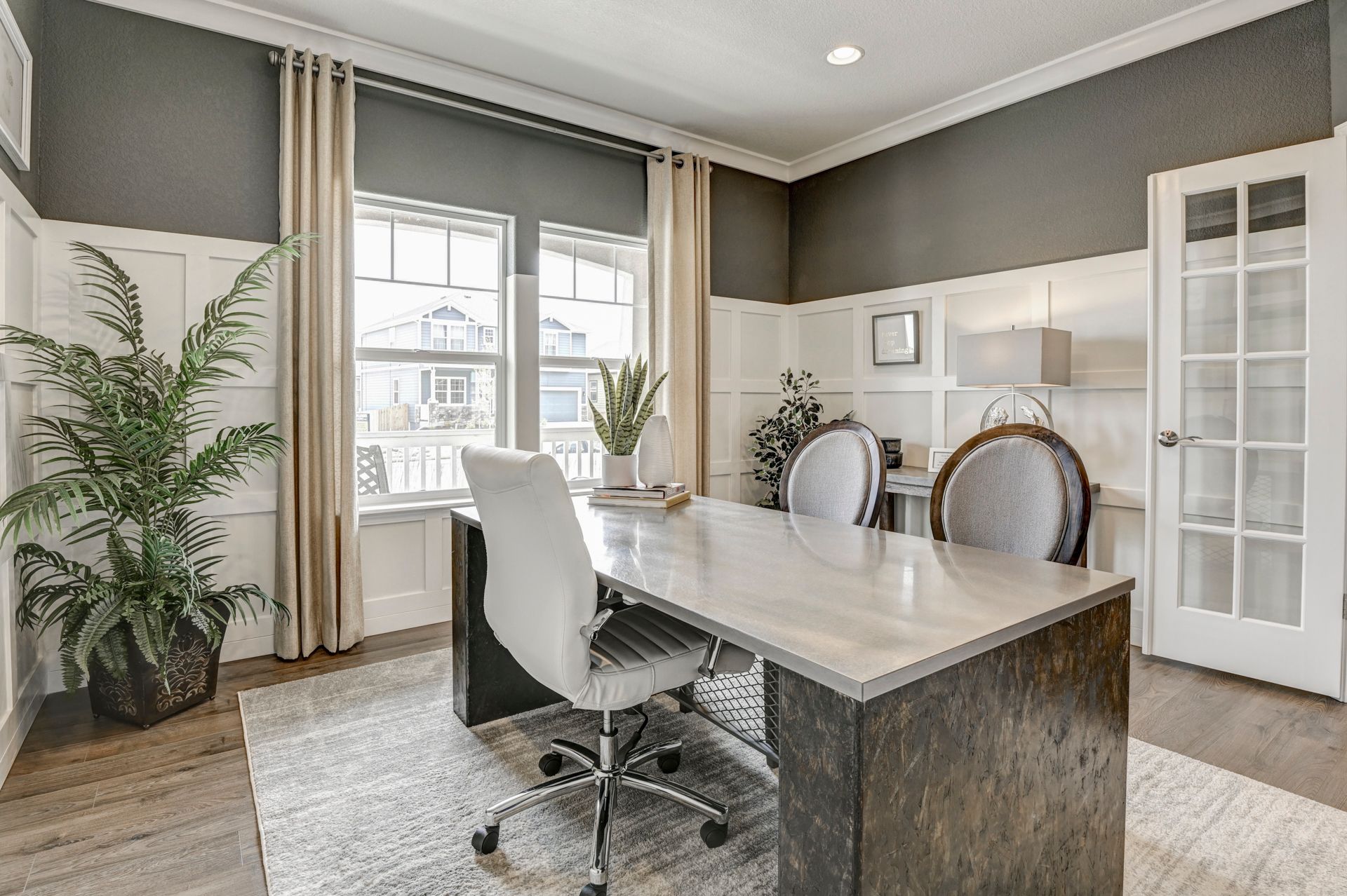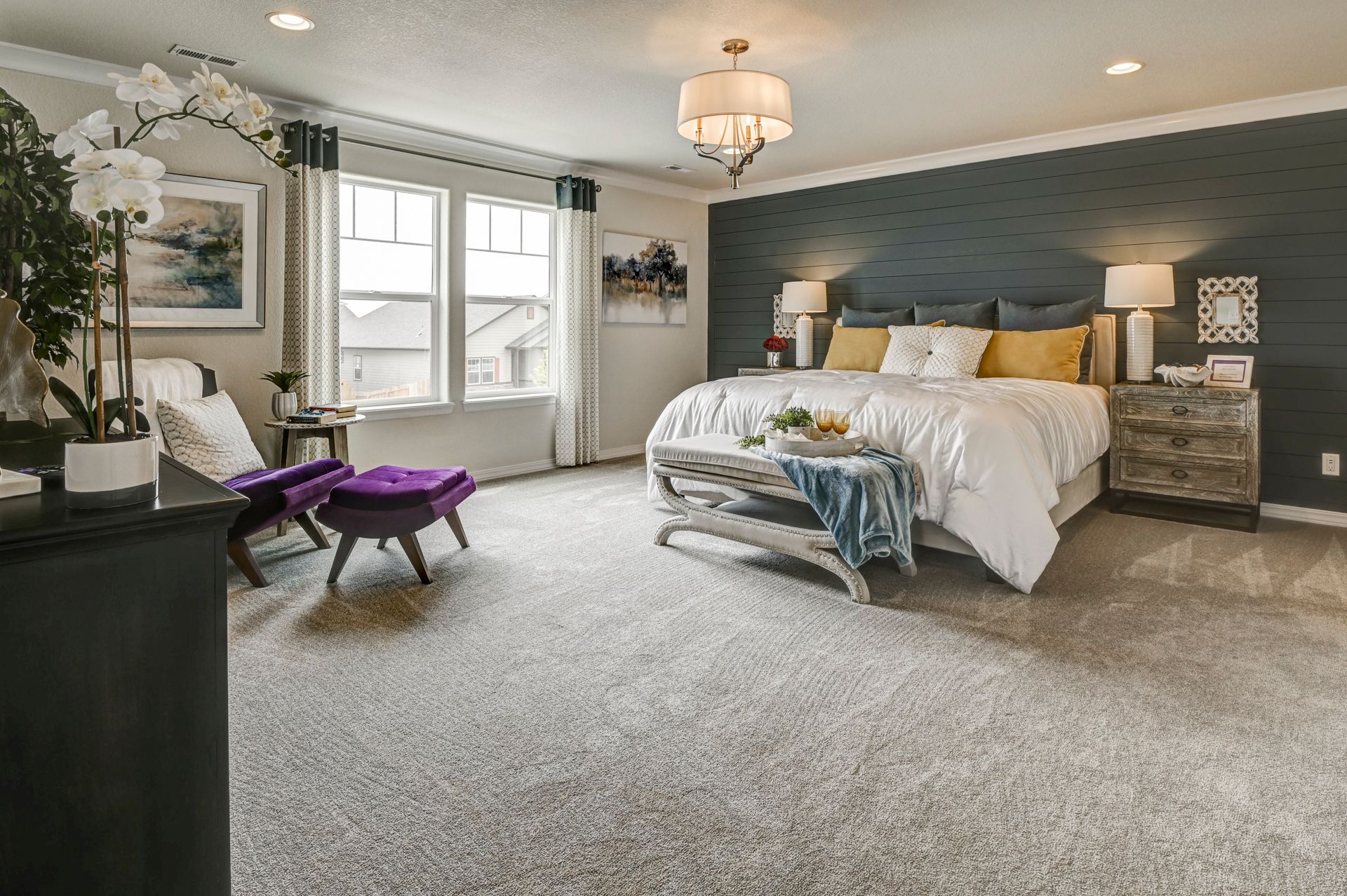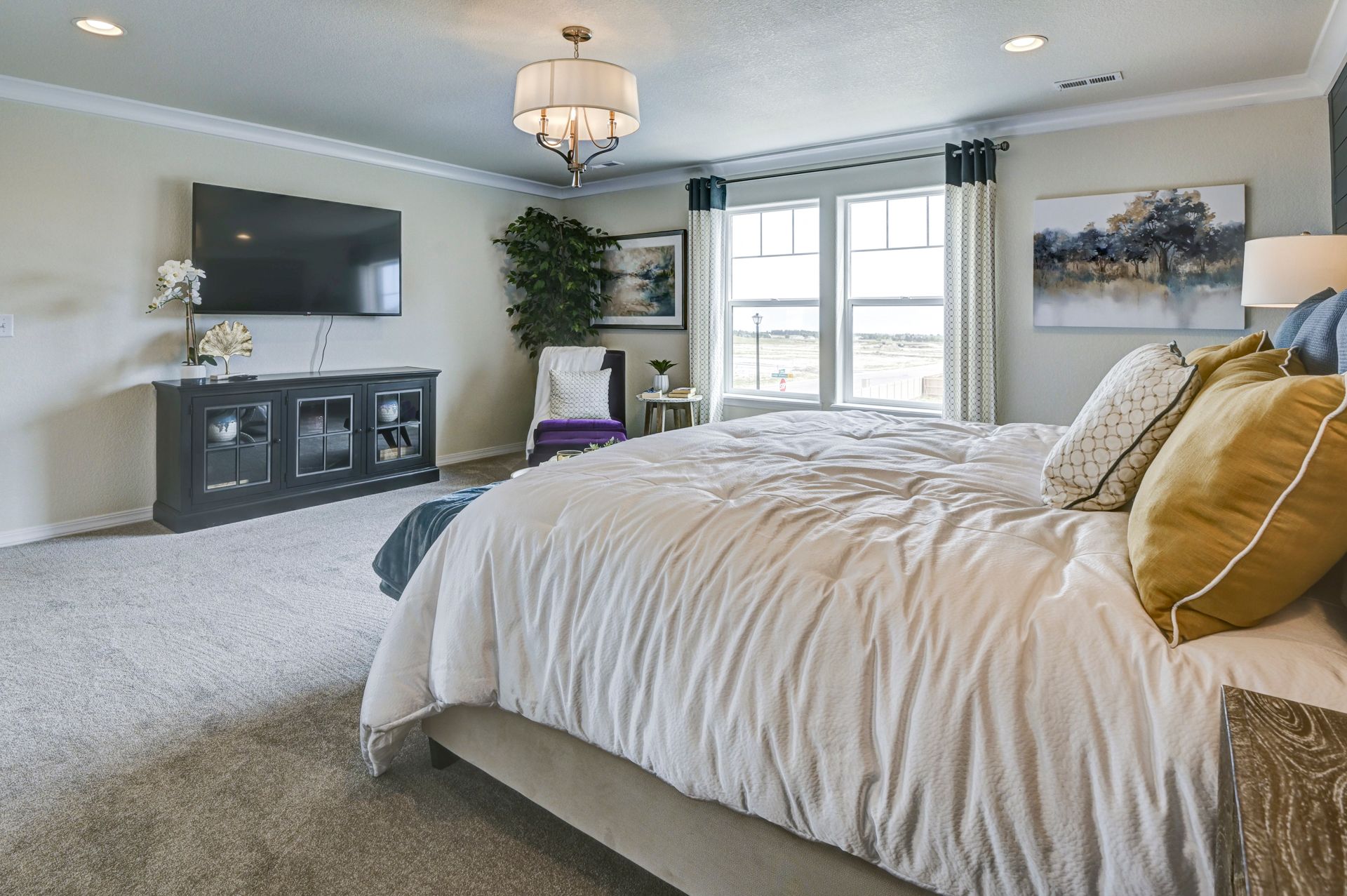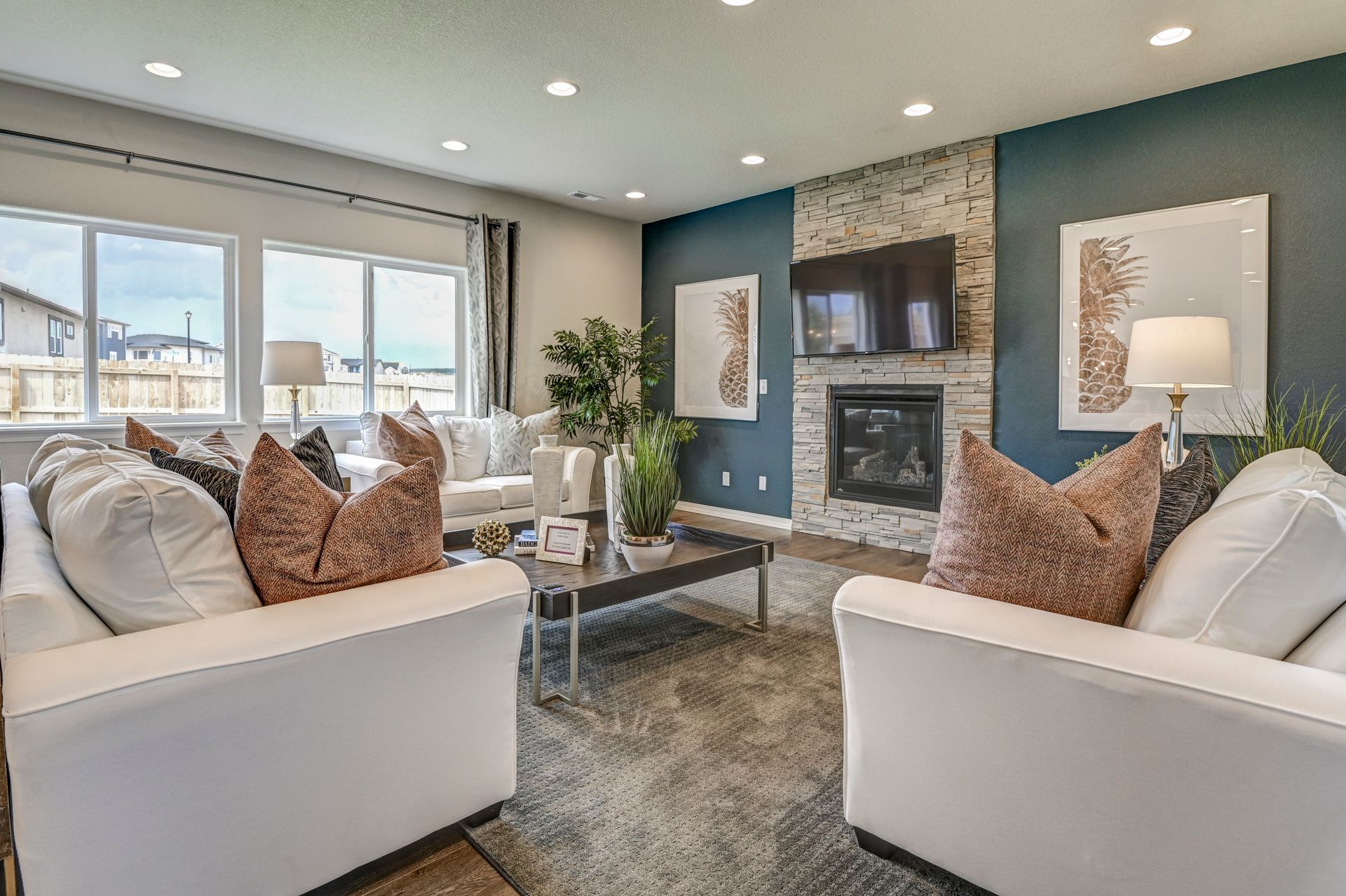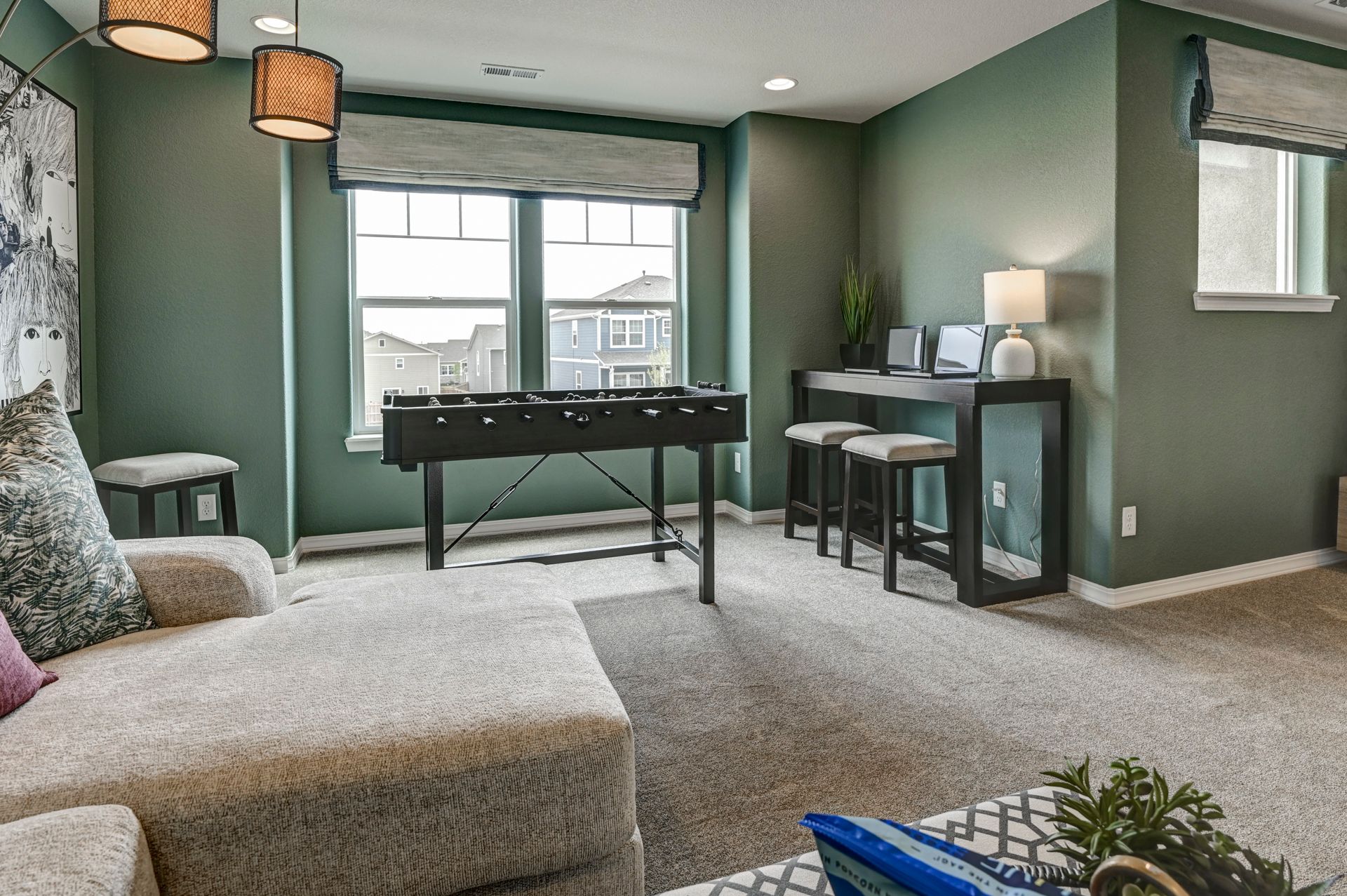 The Manchester floor plan was designed with the true modern family in mind, offering plenty of space to share and flexible options throughout. Just off of the formal entry sits a lovely living room that can convert to a study or a main-level bedroom with optional full bath. The open-concept great room flows into the kitchen and dining area. The second story hosts a loft that can be converted into a bedroom, two guest bedrooms complete with walk-in closets, a convenient laundry room, and a lovely master suite with large walk-in closet and master bath with soaking tub, walk-in shower, and dual vanity.