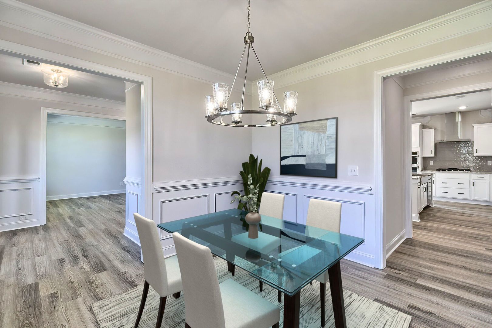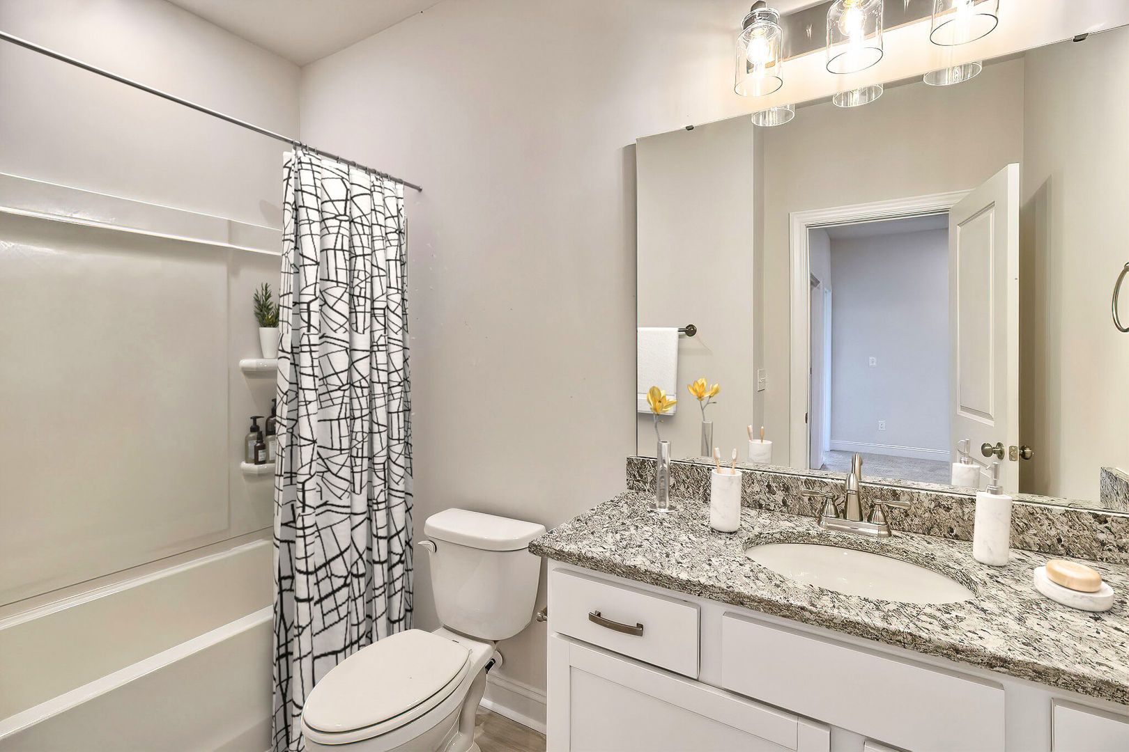 The Mia single-family home is designed for both entertaining and everyday comfort. Its open floorplan creates a seamless flow, with the kitchen at the heart of the home, featuring a central island and direct access to an optional covered porch, patio, or deck—ideal for indoor-outdoor gatherings. The main level also includes a versatile flex room, a formal dining room, and a guest suite that offers privacy and convenience. Upstairs, an additional flex room provides even more living space, while three secondary bedrooms and two hall baths ensure comfort for everyone. The expansive primary suite offers a large walk-in closet and a spa-inspired bath with dual vanities, a standing shower, and a garden tub—delivering all the essentials for relaxation.