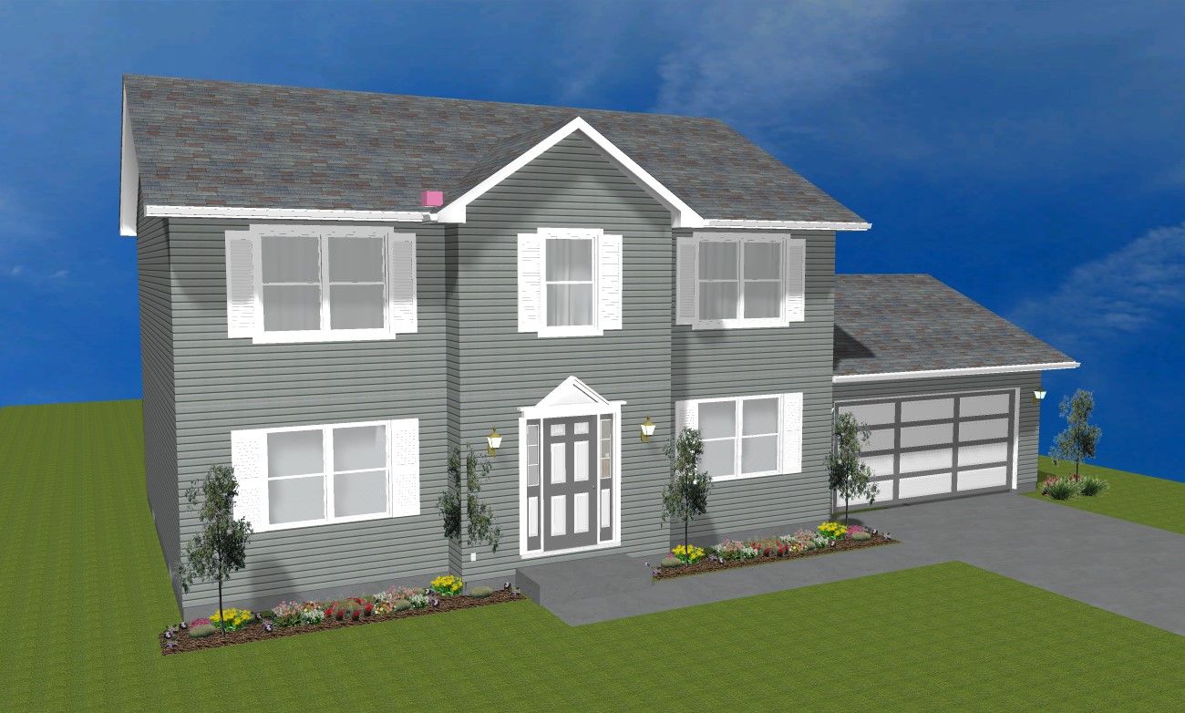 The Phillips IV is New England "Salt Box" styled version of the Phillps series that allows a larger back yard on shallow lots. It features an open concept kitchen/breakfast/family room area with an island in the kitchen. The upper level provides 4 generous bedrooms, two baths and a laundry facility. The master suite has a private bath with double vanity and a huge walk in closet. The full basement allows for potential additional areas for game rooms etc. Some community covenants require partial masonry facade which would need to be added to this plan. The base price shown contains a $55,000.00 lot allowance and permit/tap fees for Merrillville. Adjustments must be made for other areas and for lot cost variance. . Visit our website at: www.accent-homes.com.
