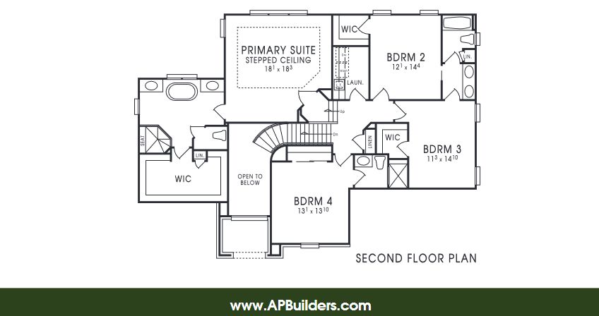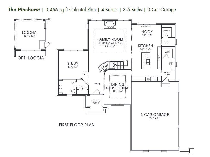 Four bedrooms + 3½ baths. Grand two-story foyer opens into the spacious family room features 10‘ stepped ceiling, cozy fireplace, and large windows. Chef’s kitchen with large center island, walk-in pantry, and spacious breakfast nook. Family foyer with drop zone and walk-in closet located off the 3-car side-entry garage entrance. Jack-and-Jill bathroom adjoins two secondary bedrooms. Convenient second floor laundry. Optional outdoor loggia. (*Pricing above does not include any applicable elevation premium costs. All pricing subject to change without notice.)