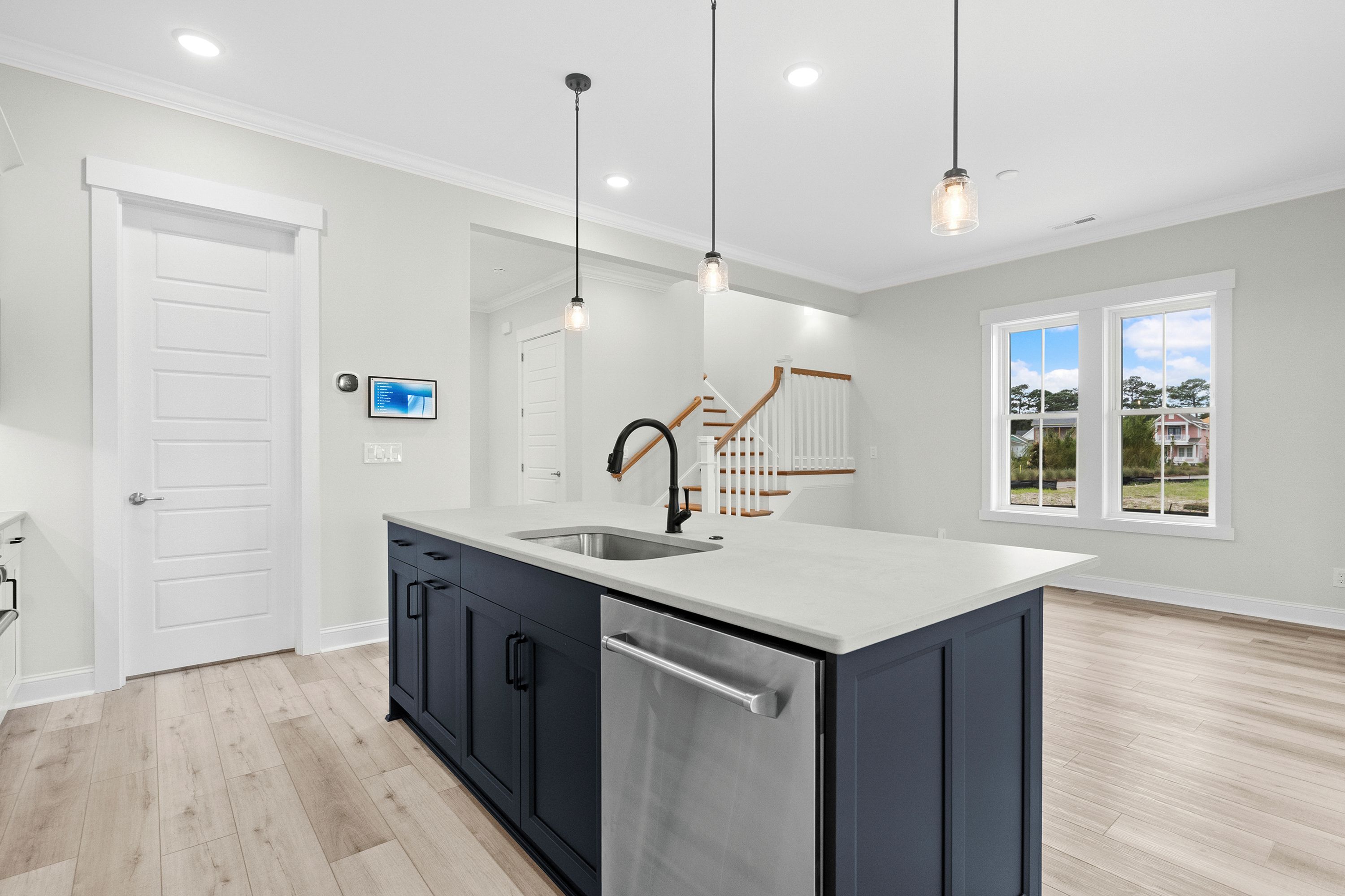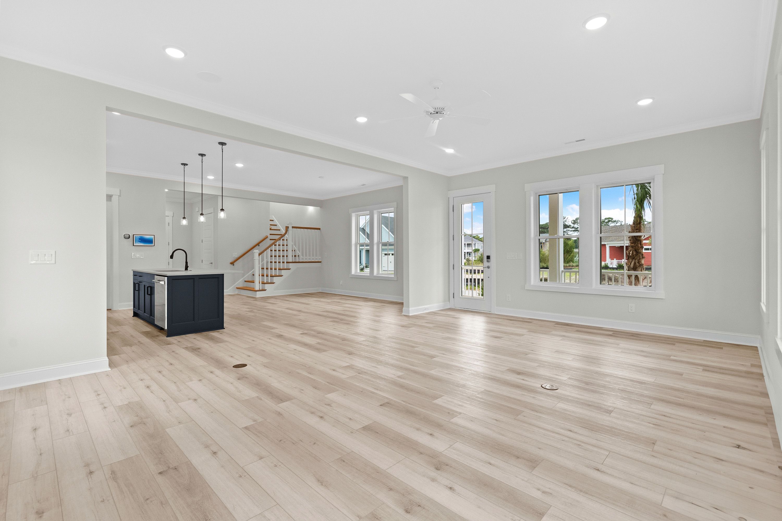 The Summerton revisits one of our favorite plans, The Georgetown, with its authentic Lowcountry-style front porch wrapping to one side with a hospitality door leading guests to your side entry porch. This plan boasts an open concept on the 1st level connecting the living, dining, and kitchen with a private retreat on the 2nd floor for the home’s three bedrooms. Functional living spaces are well-defined for each bedroom, with ample storage and privacy and a flex/office space connected to the master. Maximize the gorgeous views of Living Dunes with an optional 2nd-floor porch.