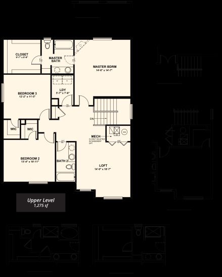 The Van Buren plan is a comfortable two-story home with plenty of optional configurations to meet homeowners’ specific needs. Upon entering, a formal living room or optional study sits off of the front door with a convenient powder room just around the corner. The open-concept great room in the back of the home flows into the large kitchen and dining room area. Upstairs, a bright and spacious loft offers a perfect flex space, while the upstairs laundry room is convenient for the whole family. The master bedroom suite features a private master bathroom and spacious walk-in closet. Bedrooms two and three are generously sized complete with walk-in-closets, and share a spacious bath.