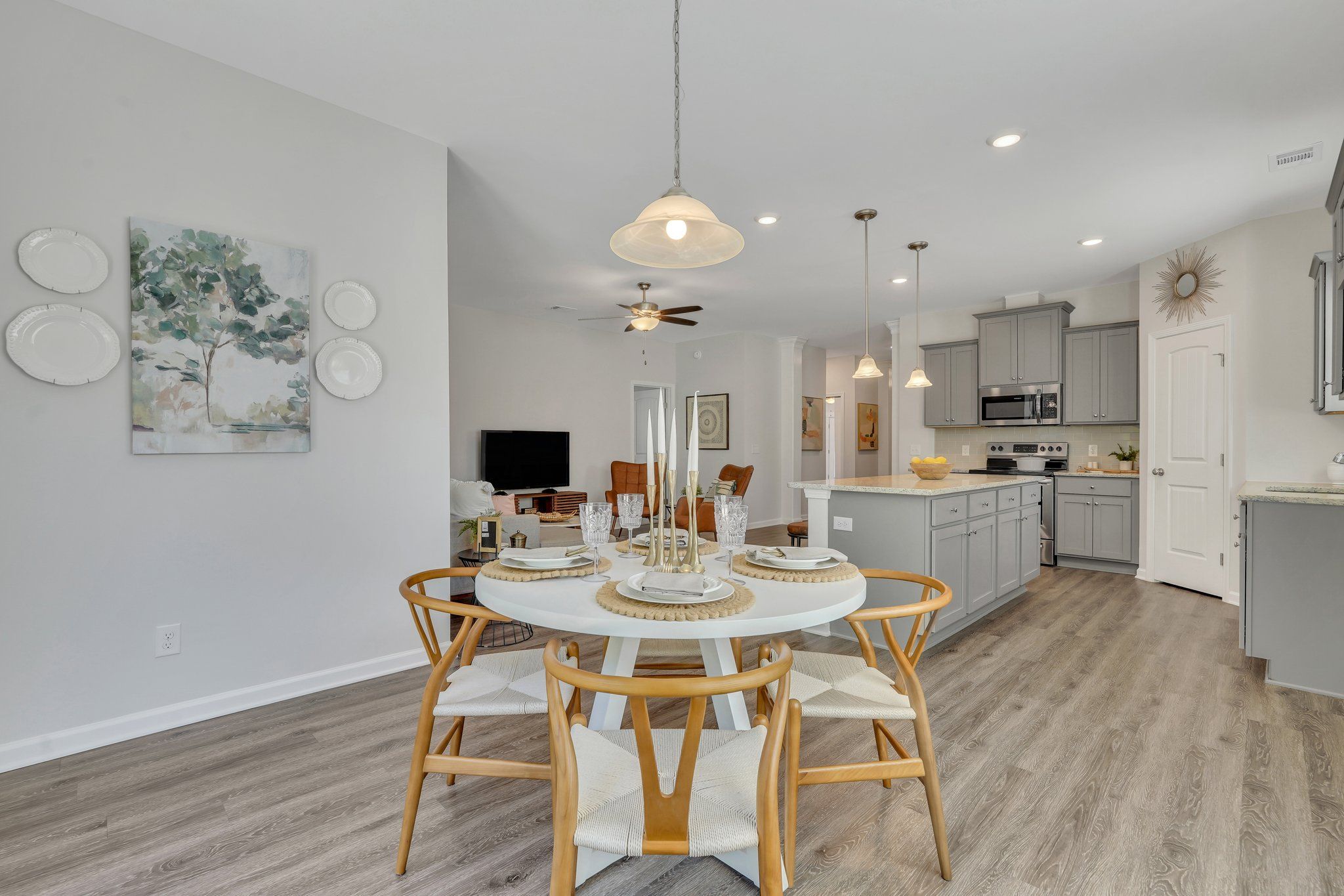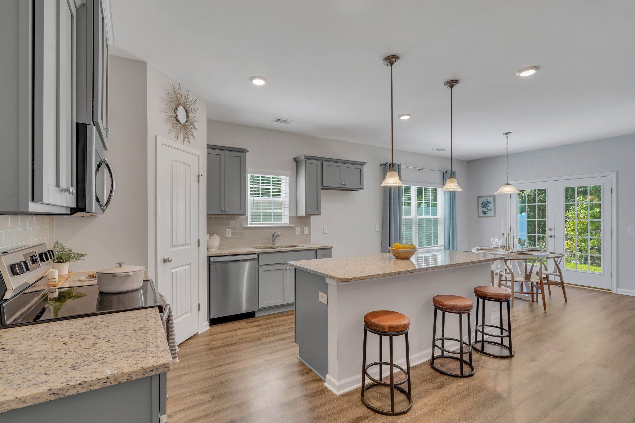 The Thimble Mill Cottage is the perfect one story with four bedrooms downstairs. The owner's suite has a private bath with a large walk-in closet, separate linen closet, and double vanity. The open floor plan includes three secondary bedrooms, a shared bath, laundry room, and kitchen with a pantry and island. All homes in the Cottage Collection come standard with Open Cell Spray foam, luxury vinyl plank flooring, and an extensive Homebuyers Warranty through 2-10.