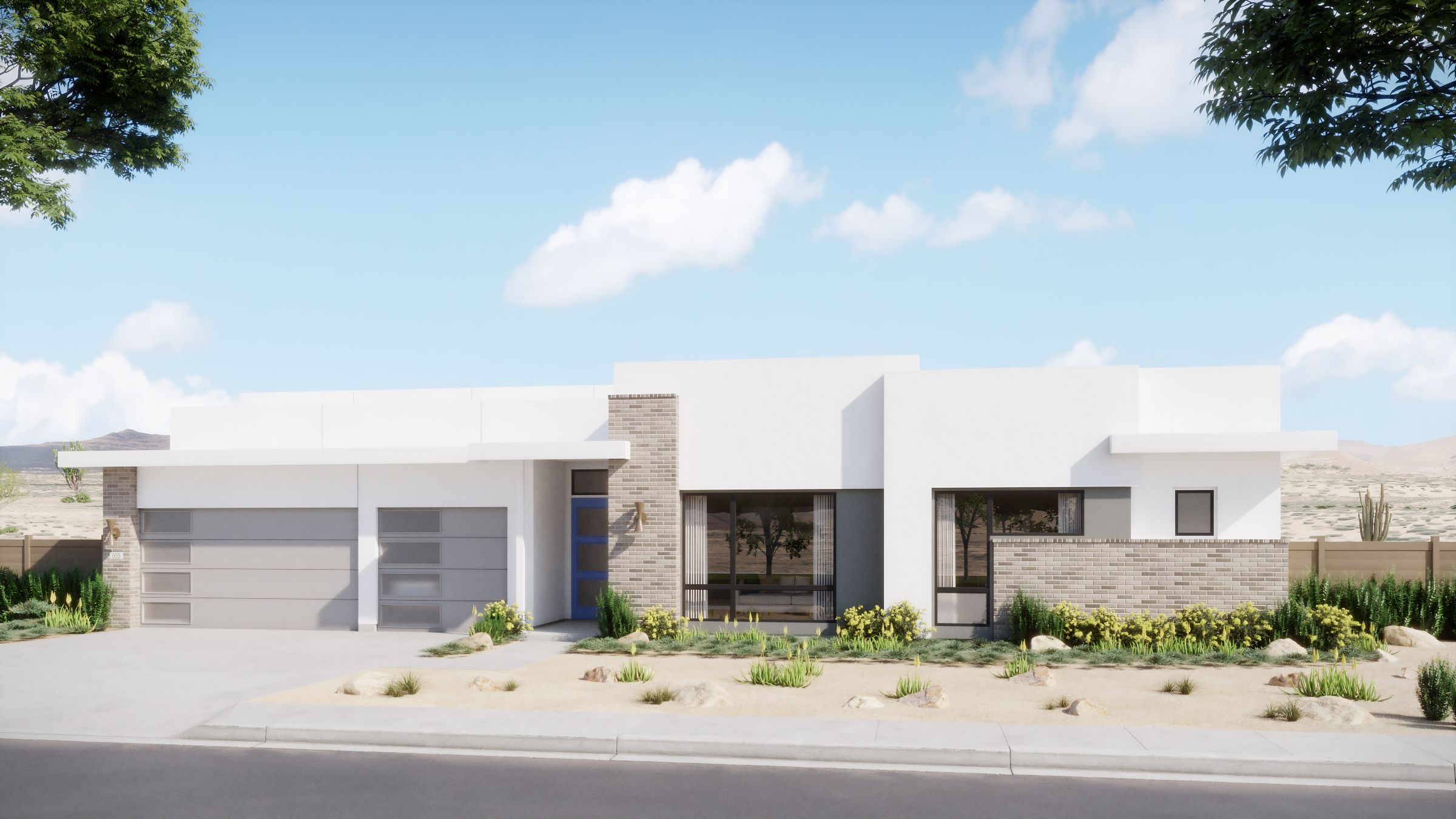 Discover the ultimate in contemporary desert living with Villa Two, an impressive single-story estate offering approximately 2,626 square feet of refined open-plan living. Designed with both style and function in mind, this home features 2 spacious bedrooms, 2 full bathrooms, 1 half bathroom, a generous 3-car garage, and a versatile flex room—all under one elegant roof. Crestwood Communities Step into airy sophistication as you’re greeted by soaring 10-12 foot ceilings, clean architectural lines and expansive glass that blur the lines between indoor and outdoor living. The modern chef-inspired kitchen anchors the home, boasting sleek quartz countertops, designer cabinetry and a large island perfect for entertaining or everyday lifestyle. Seamlessly transition from the main living areas thr...