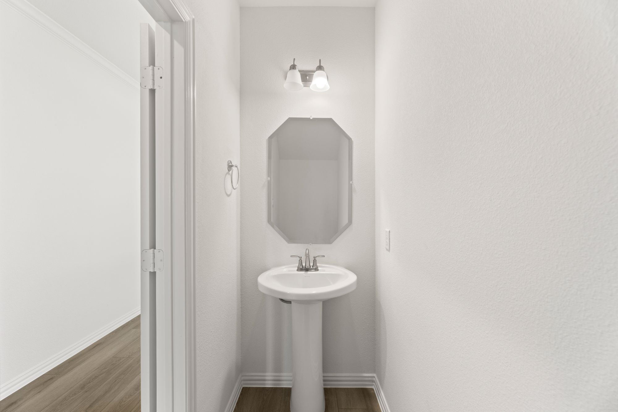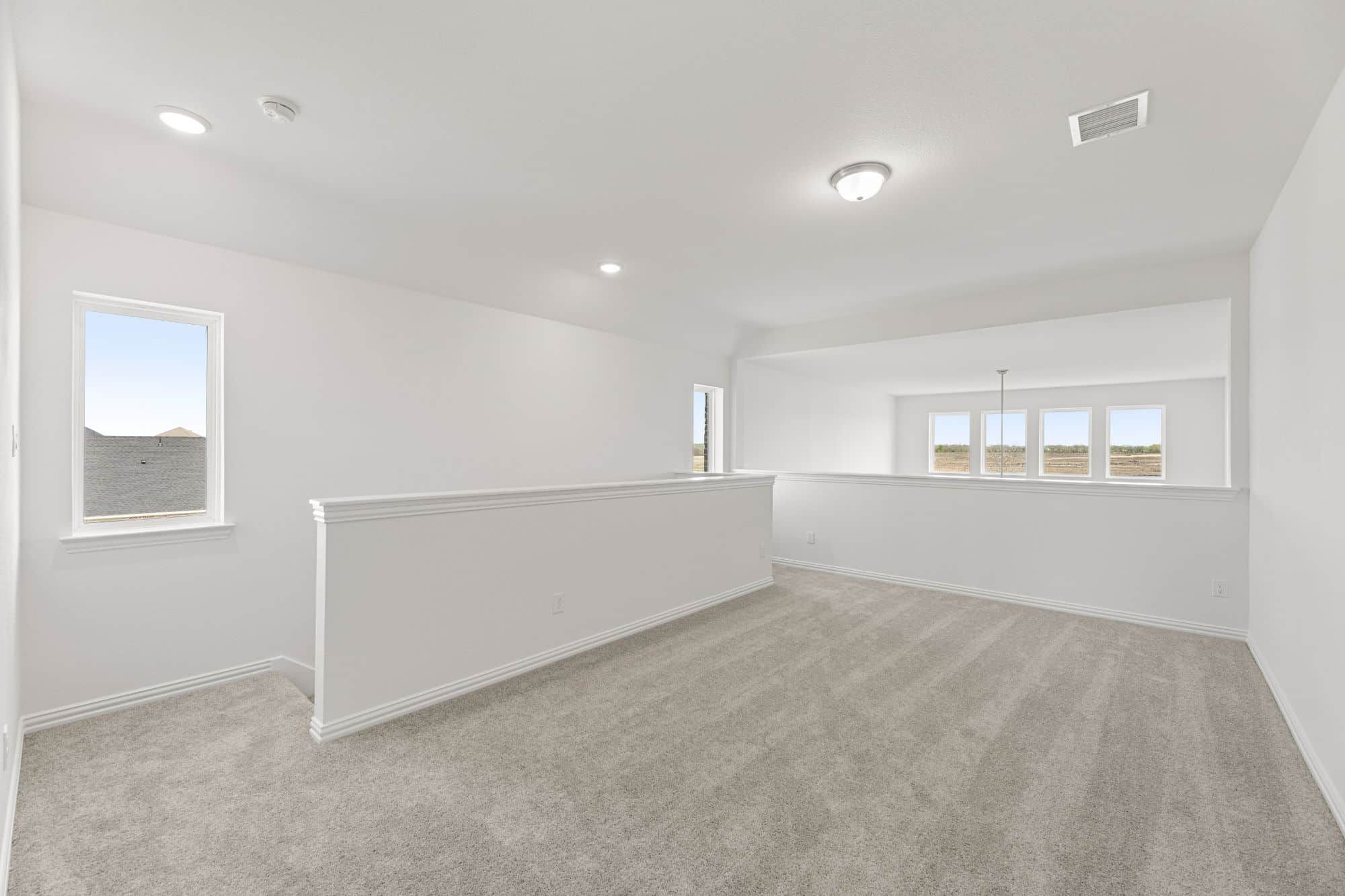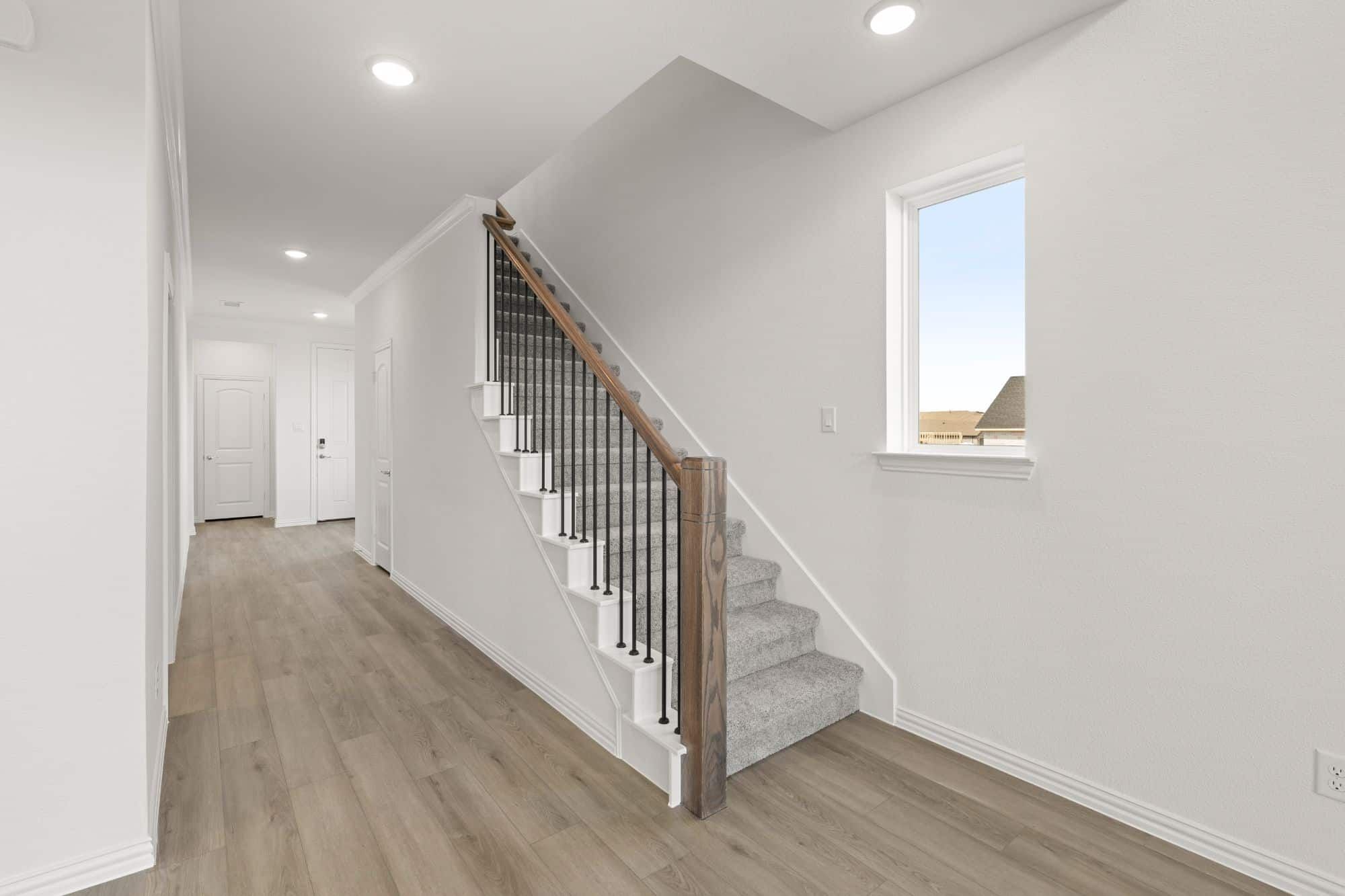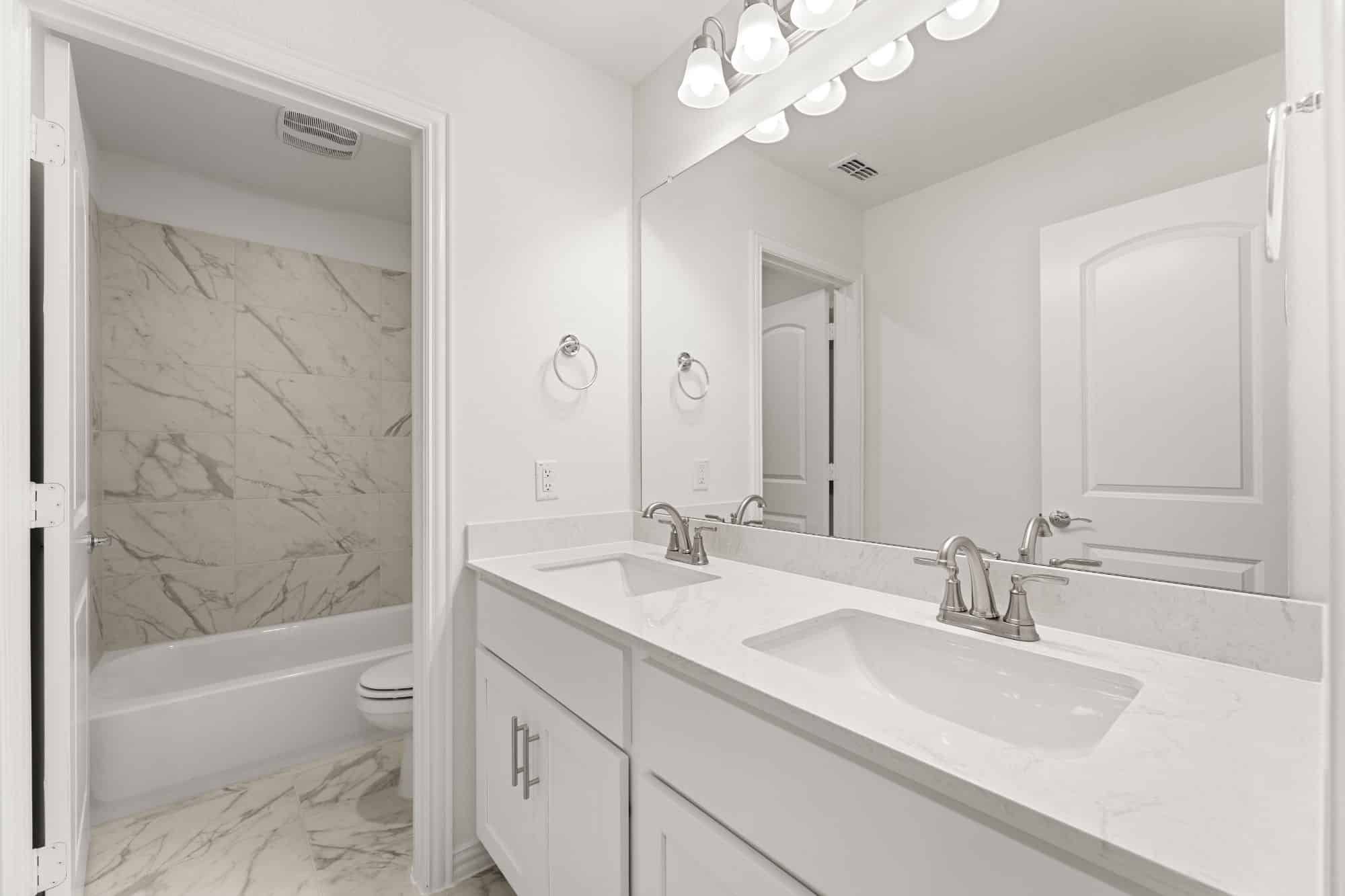 The Walton offers a well-designed two-story layout perfect for families and entertaining. A welcoming foyer—accessible from both the front door and garage—leads past a mudroom, laundry room, and powder bath into a spacious family room. The open-concept design flows seamlessly into the dining area and kitchen, which includes bar seating, ample counter space, a walk-in pantry, and direct access to a covered patio. The main-floor primary suite features a spa-style bath with double vanities, a soaking tub, glass shower, and a walk-in closet. Upstairs, an open loft overlooks the living space and connects to three secondary bedrooms—each with walk-in closets and shared access to a full bath with double sinks and a tub/shower combo.