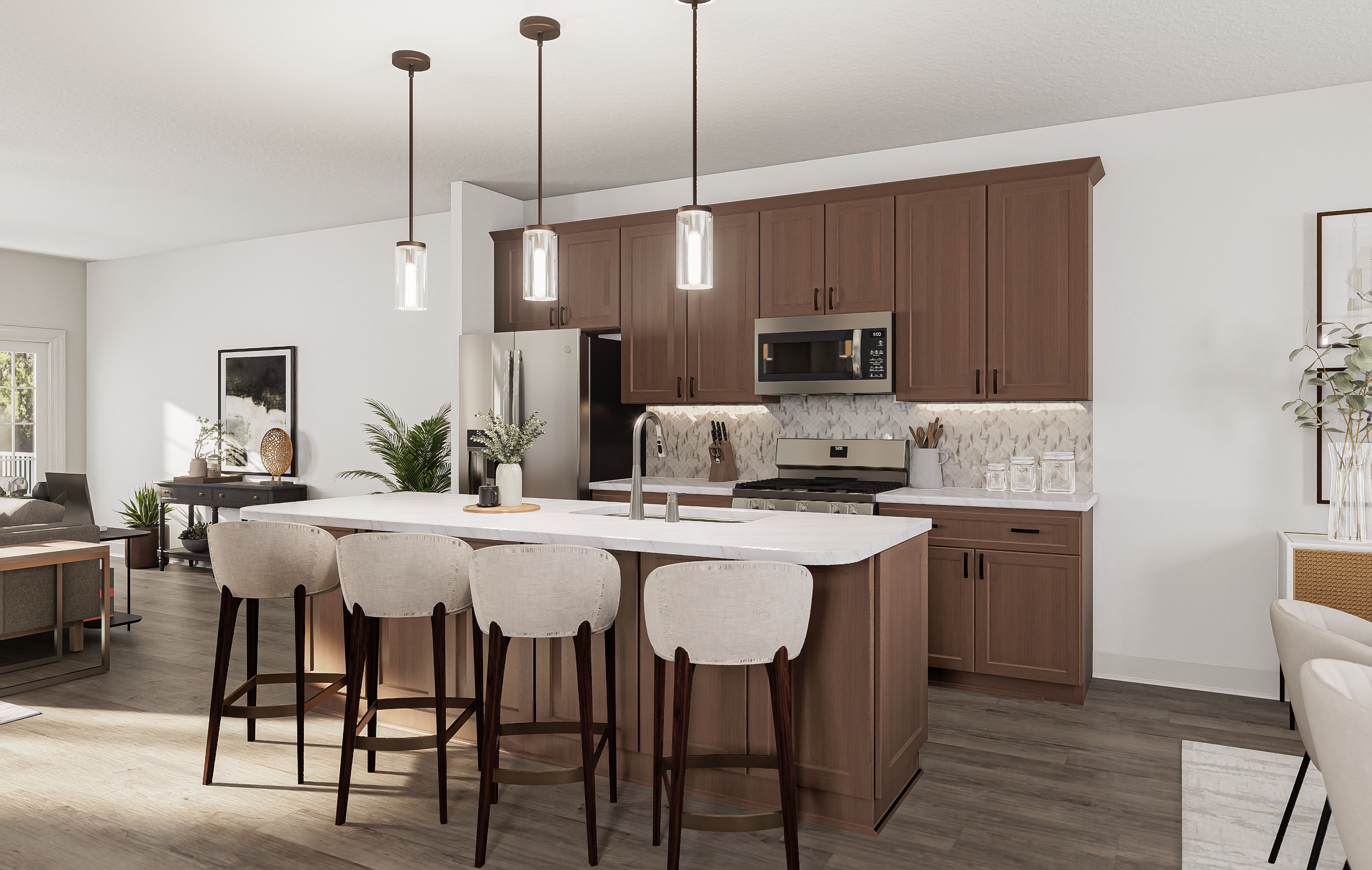 The Westerly is brand-new for 2025, designed for both everyday comfort and effortless hosting. This 3-story home features 3 bedrooms, 2.5 bathrooms, and a 1-car garage, with the flexibility to add a fourth bedroom and full bathroom. The entry level includes a versatile flex space perfect for a home office or media room. On the main level, an open-concept kitchen with a large center island flows into the dining and living areas, filled with natural light and extending to a private deck. Upstairs, two bedrooms share a full bath, while the primary suite offers a quiet retreat with dual closets and a spacious bathroom with double vanities. Plans vary by community and homesite. Please speak with a community specialist for details.