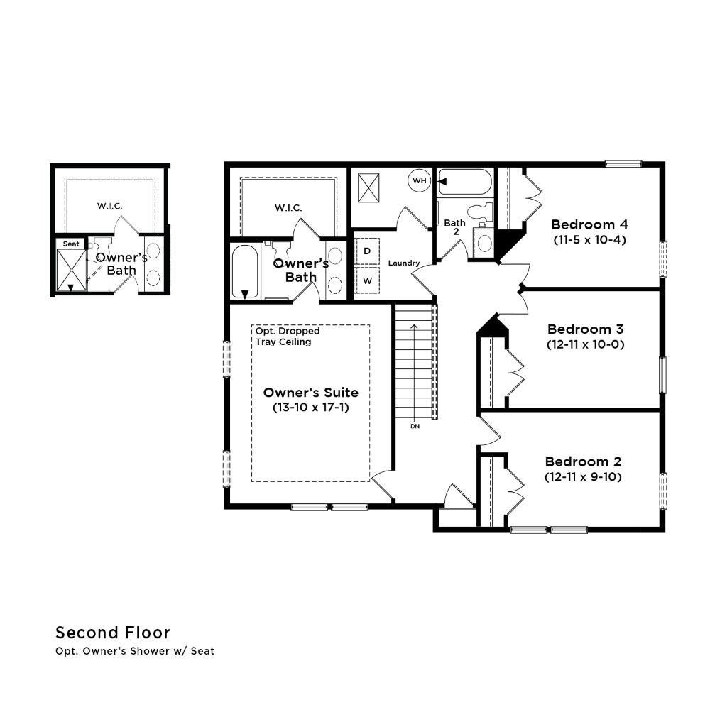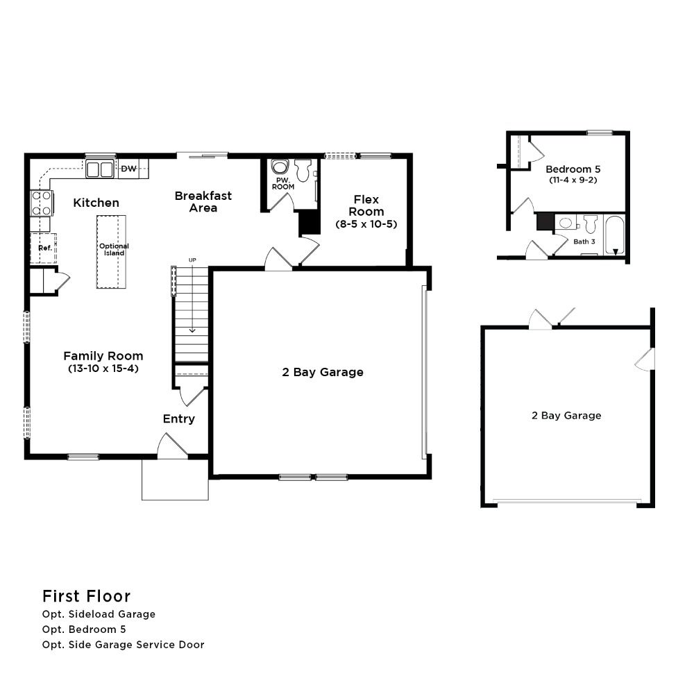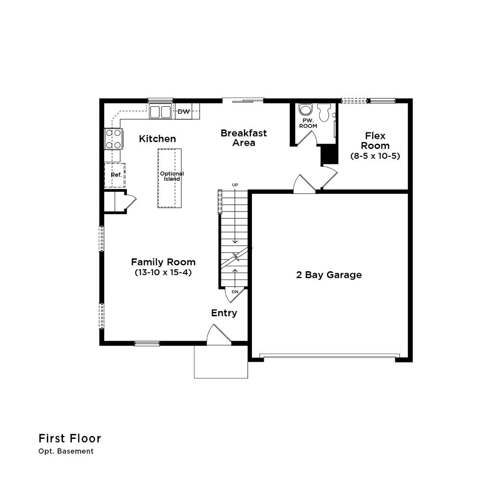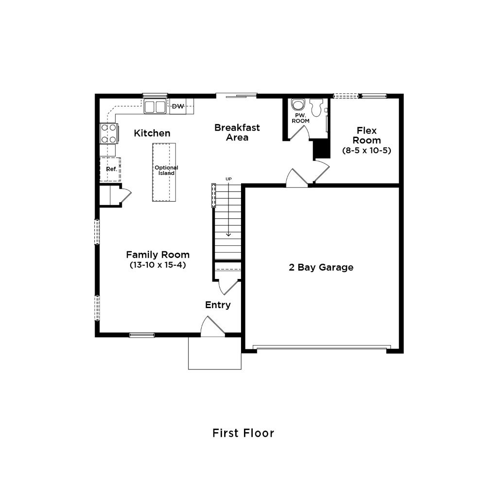 Attached 2-car garage. Open concept kitchen with optional island opens to café area and family room. Flex room can be used as an office, playroom, or media room. Owner’s suite with generous walk-in closet, dual vanity, and shower.