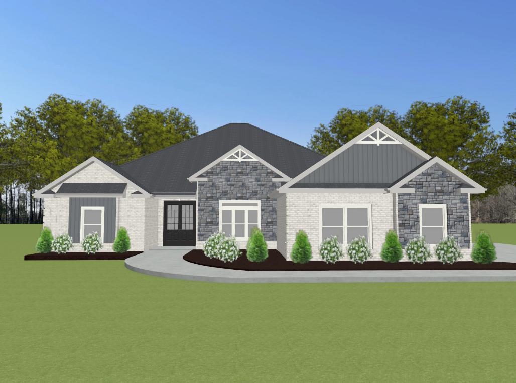 All brick Williamson Plan B is an open plan with a 3 car side entry garage backed by a 2-10 home warranty. Home has 4 bedrooms, 3 baths. Home has wood plus flooring (Mohawk Revwood, Engineered Hardwood or similar product) in all living areas and bedrooms. Great Room features 12' ceiling with 8' doorways, extensive trim, gas-log fireplace with upgraded fireplace treatment, floor outlet, recessed lights and ceiling fan. Dining room has 12’ coffered ceiling with 8' doorways, extensive trim including shadow box under chair rail. Kitchen includes 12’ ceiling with 8' doorways, 9' soft close custom cabinetry and granite counter tops, large island with extra storage and countertop seating, stainless appliances (Gas Cooktop, Cabinet Vent Hood, Wall Oven, Wall Microwave, Dishwasher), tile backsplash...