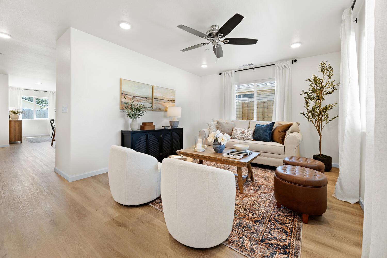 Welcome to the beautiful "Willow" floor plan a thoughtfully designed 3-bedroom, 2-bath home offering 1,386 sq. ft. of modern comfort. Inside, you'll find stylish upgrades including quartz countertops, stainless steel appliances, and generous storage space throughout. The owner’s suite features a walk-in closet, single vanity, and a shower/tub combo — perfect for everyday ease. Enjoy a low-maintenance, eco-friendly front yard with artificial turf, water-wise shrubs, and a drip irrigation system. Additional highlights include a Google Nest thermostat and flexible solar options (lease or purchase) to help lower utility costs. Located near major transportation routes for easy access to surrounding cities — this home is where comfort meets convenience.