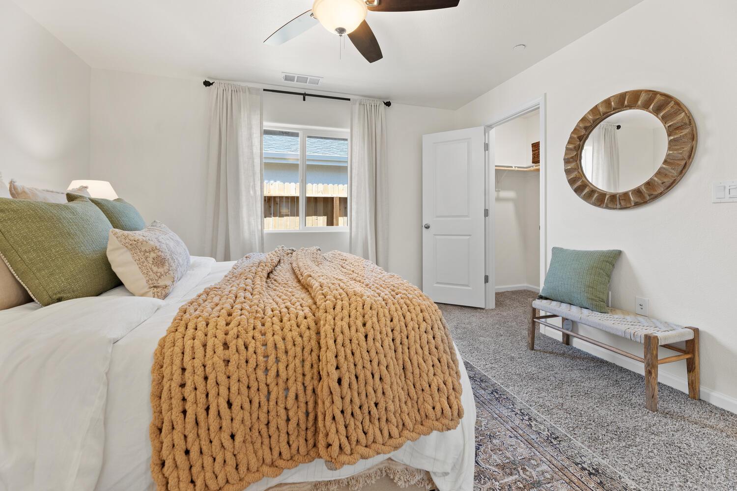 Welcome to the beautiful "Willow" floor plan a thoughtfully designed 3-bedroom, 2-bath home offering 1,386 sq. ft. of modern comfort. Inside, you'll find stylish upgrades including quartz countertops, stainless steel appliances, and generous storage space throughout. The owner’s suite features a walk-in closet, single vanity, and a shower/tub combo — perfect for everyday ease. Enjoy a low-maintenance, eco-friendly front yard with artificial turf, water-wise shrubs, and a drip irrigation system. Additional highlights include a Google Nest thermostat and flexible solar options (lease or purchase) to help lower utility costs. Located near major transportation routes for easy access to surrounding cities — this home is where comfort meets convenience.